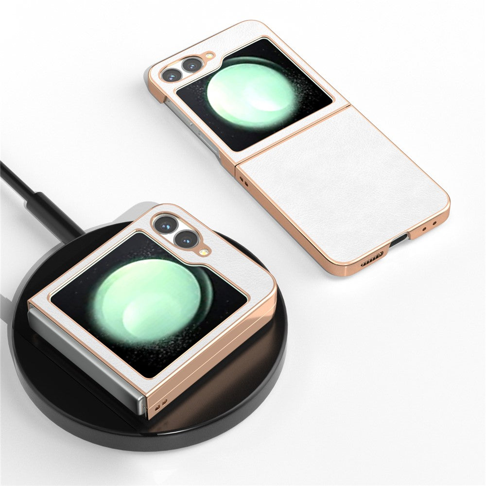 For Samsung Galaxy Z Flip7 FE 5G / Z Flip6 5G Case Electroplating Phone Cover PU Leather+TPU Litchi Texture Case - White
