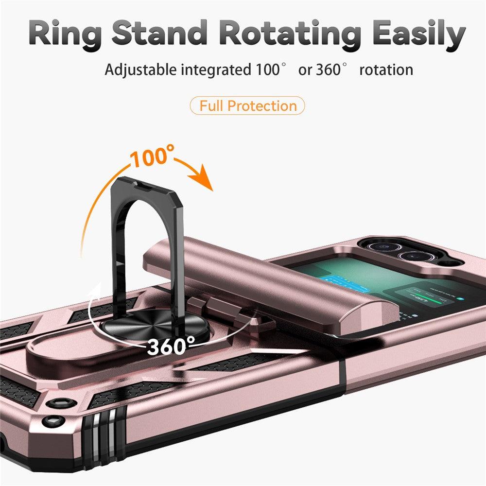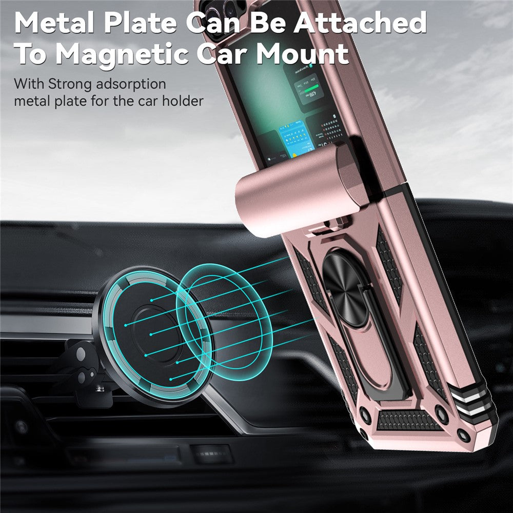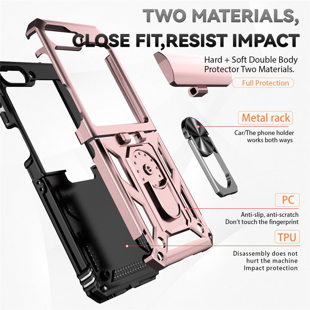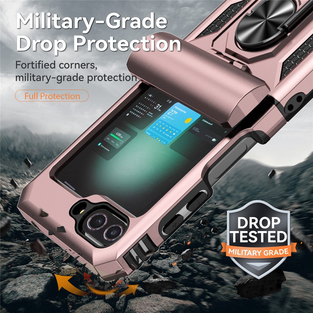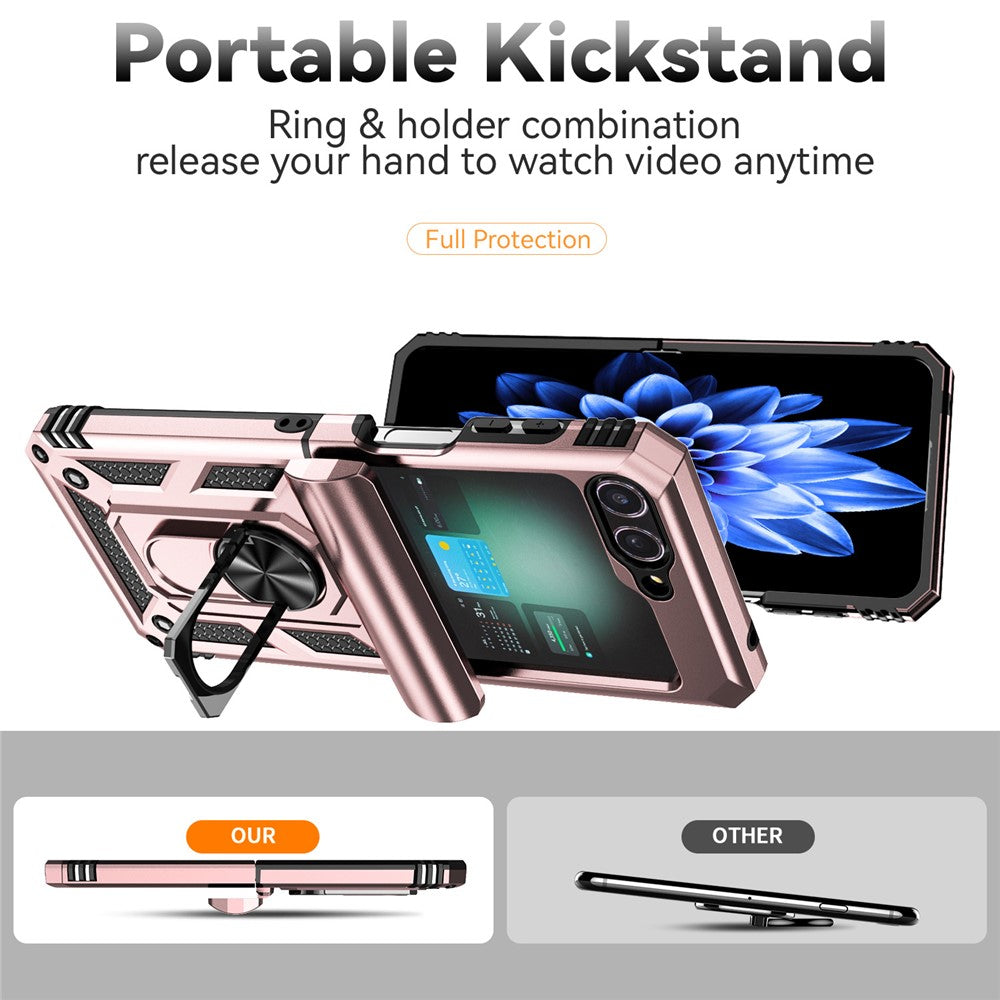 For Samsung Galaxy Z Flip7 FE 5G / Z Flip6 5G Case Lens Protection PC TPU Phone Cover Anti-Drop Ring Holder - Rose Gold