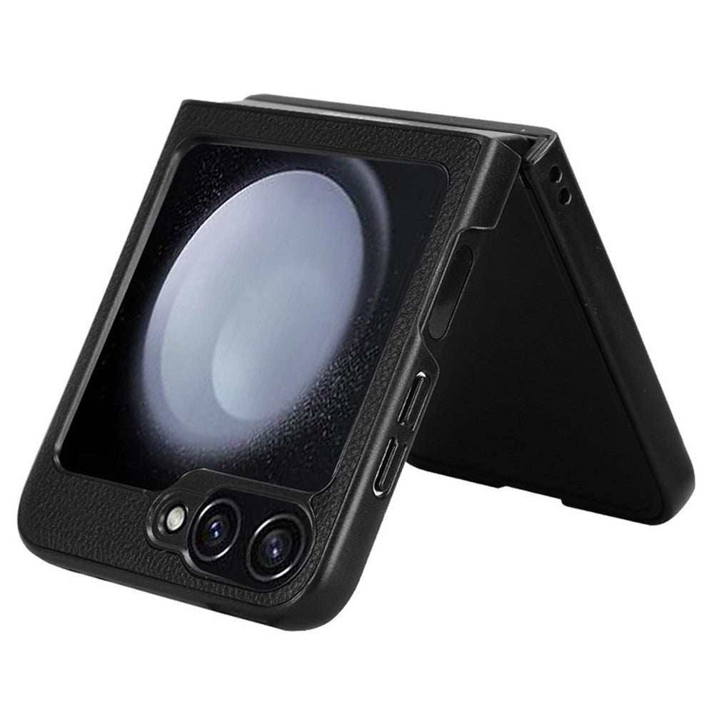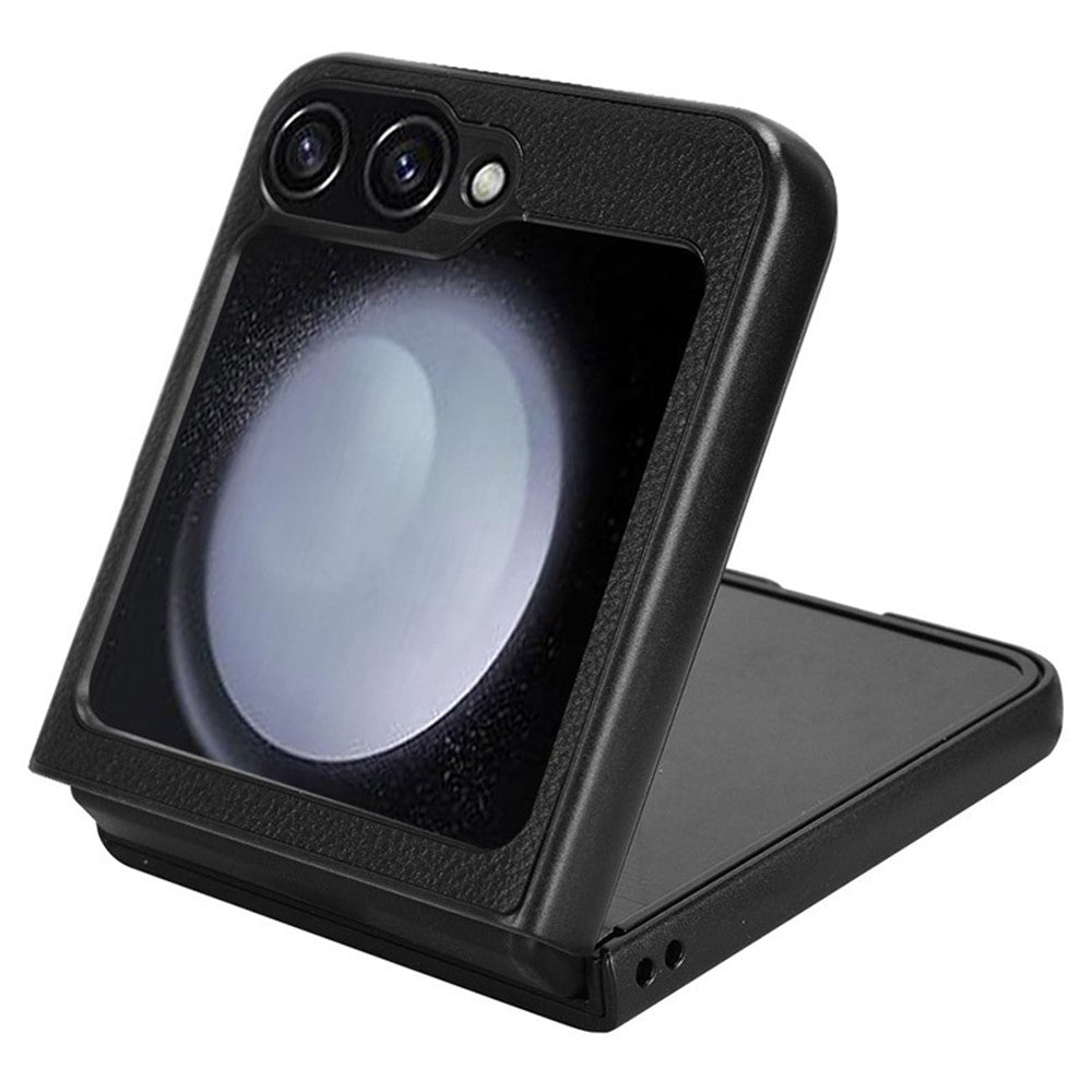 For Samsung Galaxy Z Flip7 FE 5G / Z Flip6 5G Case Litchi Texture Leather Coated PC Phone Cover Card Slot - Black