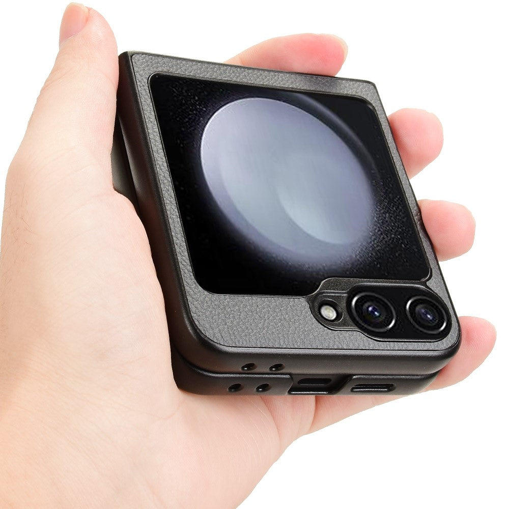 For Samsung Galaxy Z Flip7 FE 5G / Z Flip6 5G Case Litchi Texture Leather Coated PC Phone Cover Card Slot - Grey