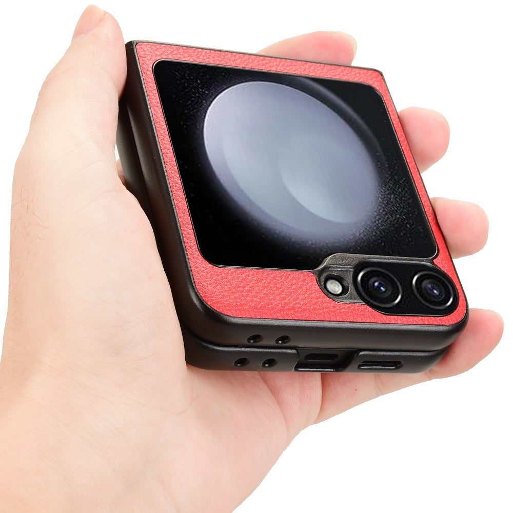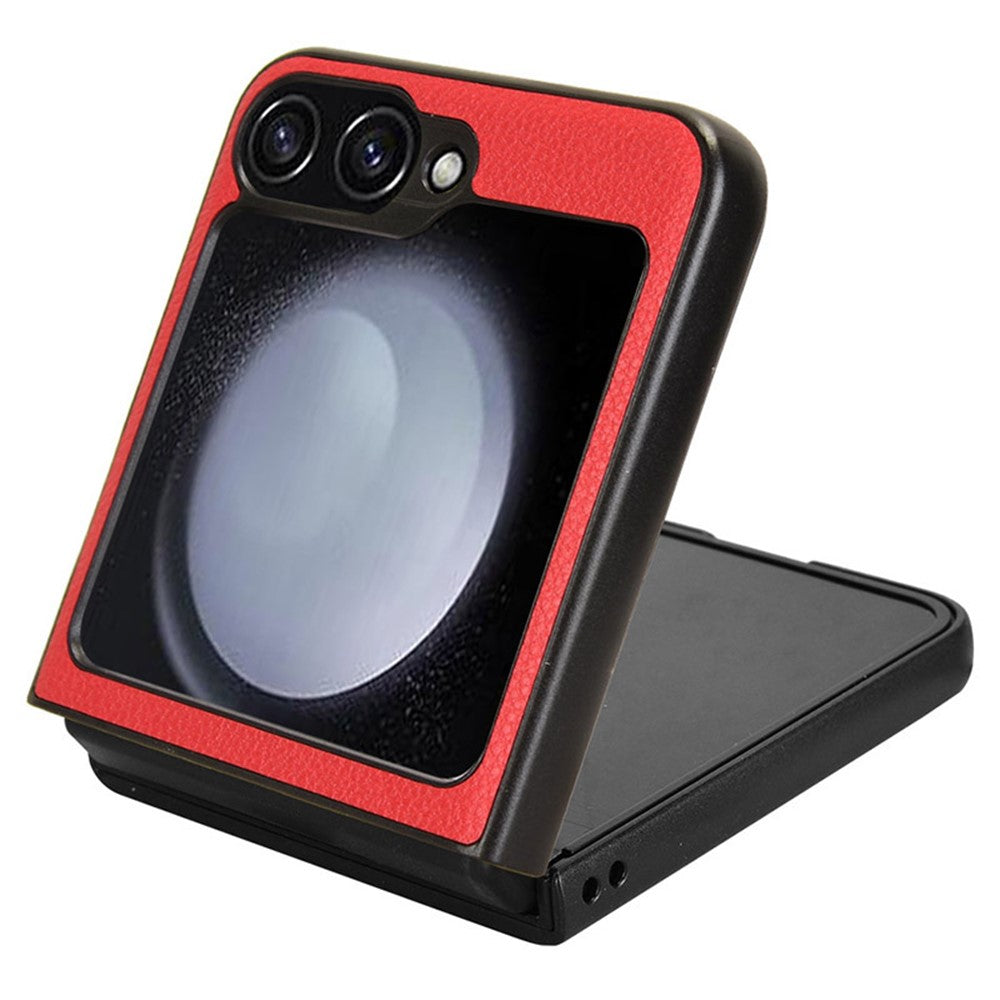 For Samsung Galaxy Z Flip7 FE 5G / Z Flip6 5G Case Litchi Texture Leather Coated PC Phone Cover Card Slot - Red