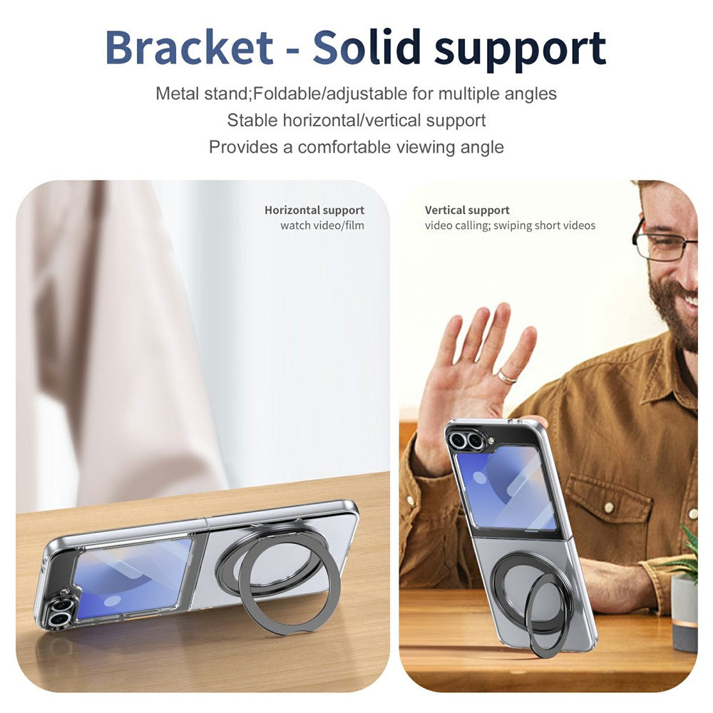 For Samsung Galaxy Z Flip7 FE 5G / Z Flip6 5G Case Magnetic Kickstand Clear PC Phone Cover with HD Screen Film - Black
