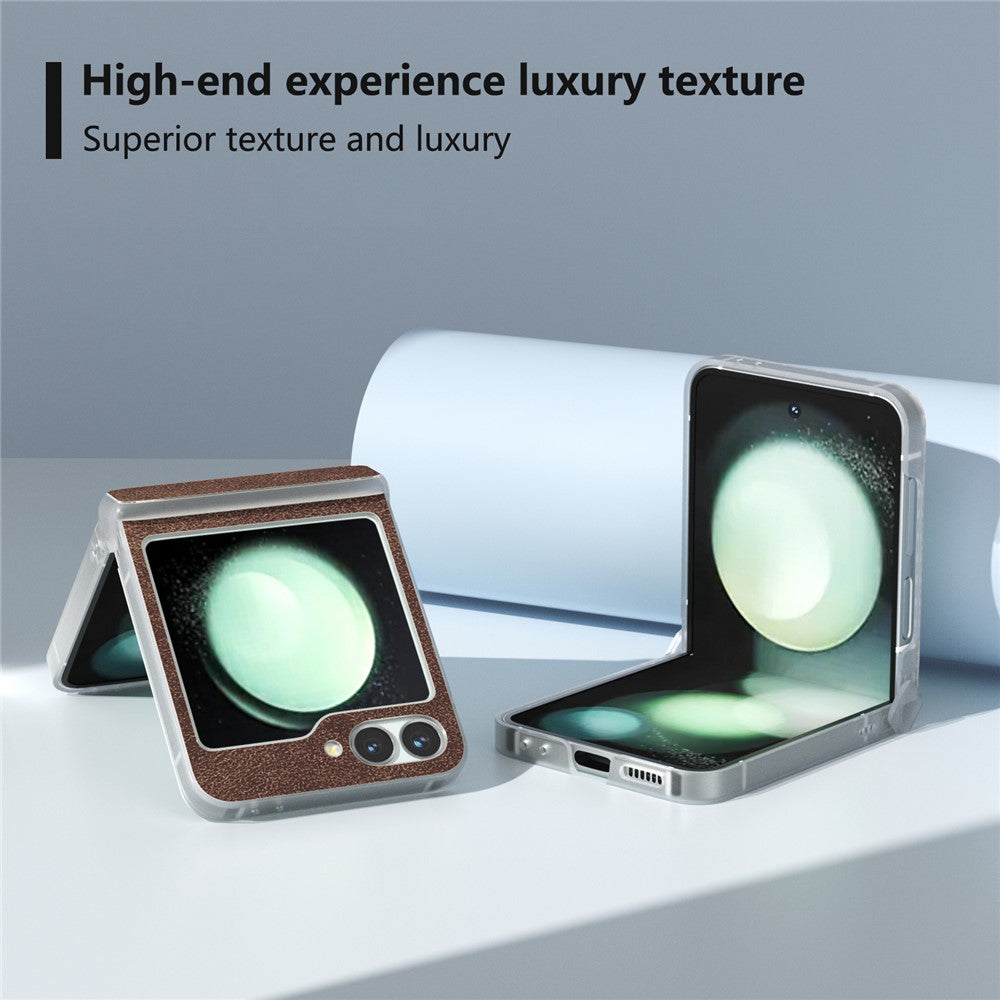 For Samsung Galaxy Z Flip7 FE 5G / Z Flip6 5G Case Matte Edge PU Leather Coated PC Hinge Protection Cover - Coffee