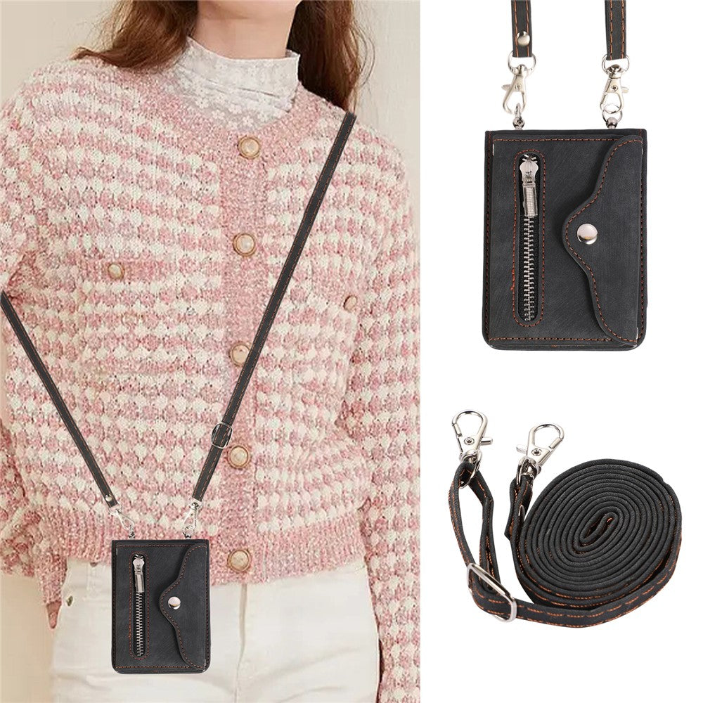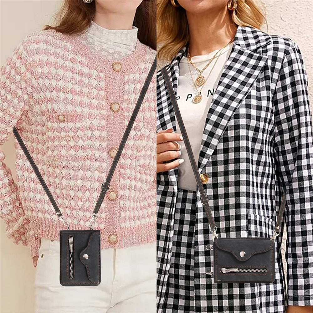 - ?Card Holder Design?Features a multi-slot accordion-style card holder with a zipper and snap button closure, providing organized storage for cards, cash, and coins