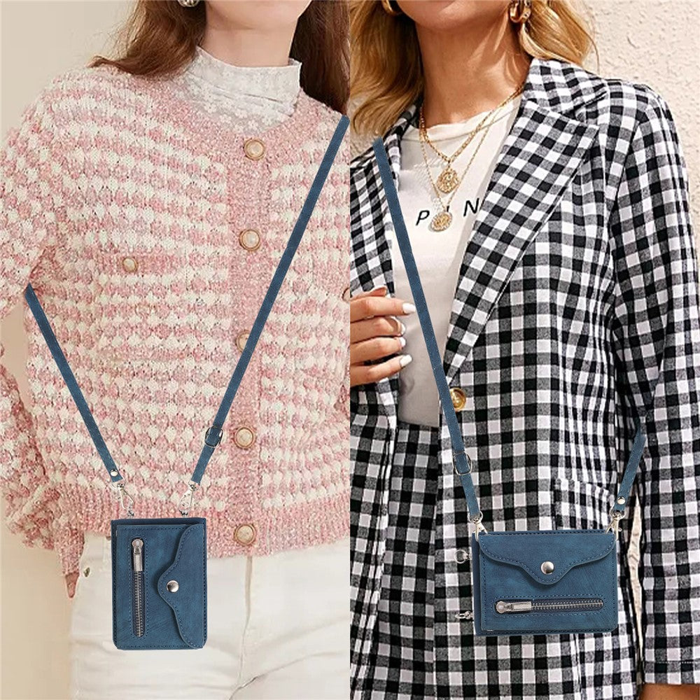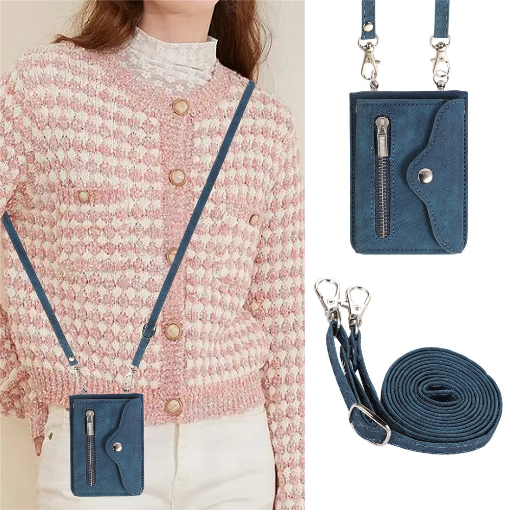 - ?Card Holder Design?Features a multi-slot accordion-style card holder with a zipper and snap button closure, providing organized storage for cards, cash, and coins