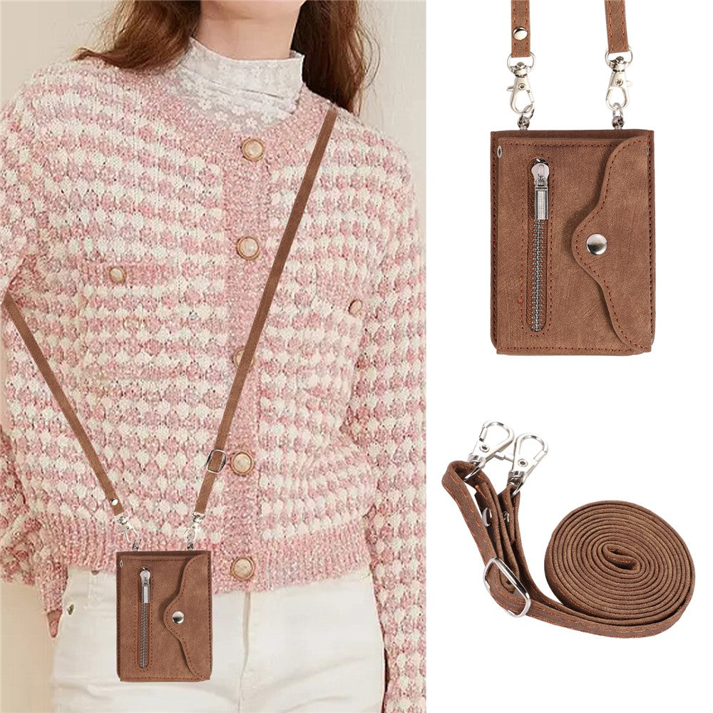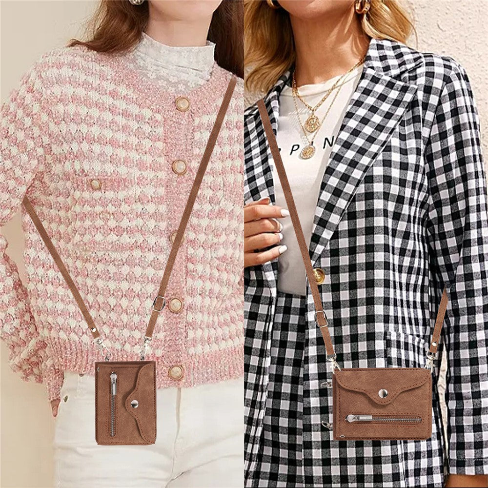 - ?Card Holder Design?Features a multi-slot accordion-style card holder with a zipper and snap button closure, providing organized storage for cards, cash, and coins