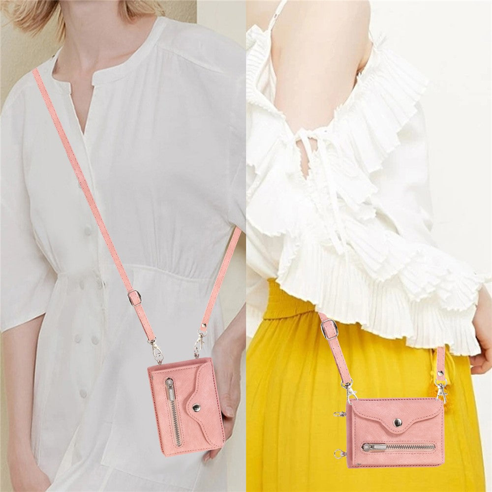 For Samsung Galaxy Z Flip7 FE 5G / Z Flip6 5G Case PU Leather + TPU RFID Blocking Card Slots Phone Cover with 2 Straps - Rose Gold