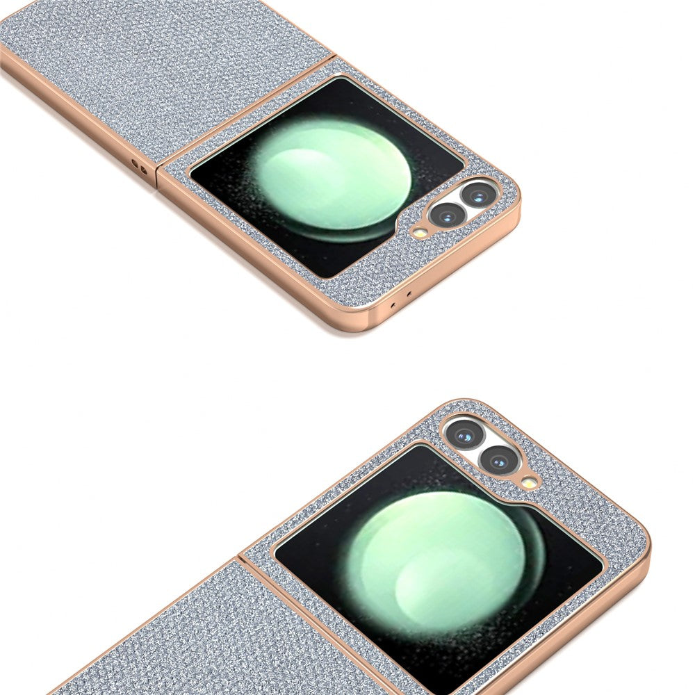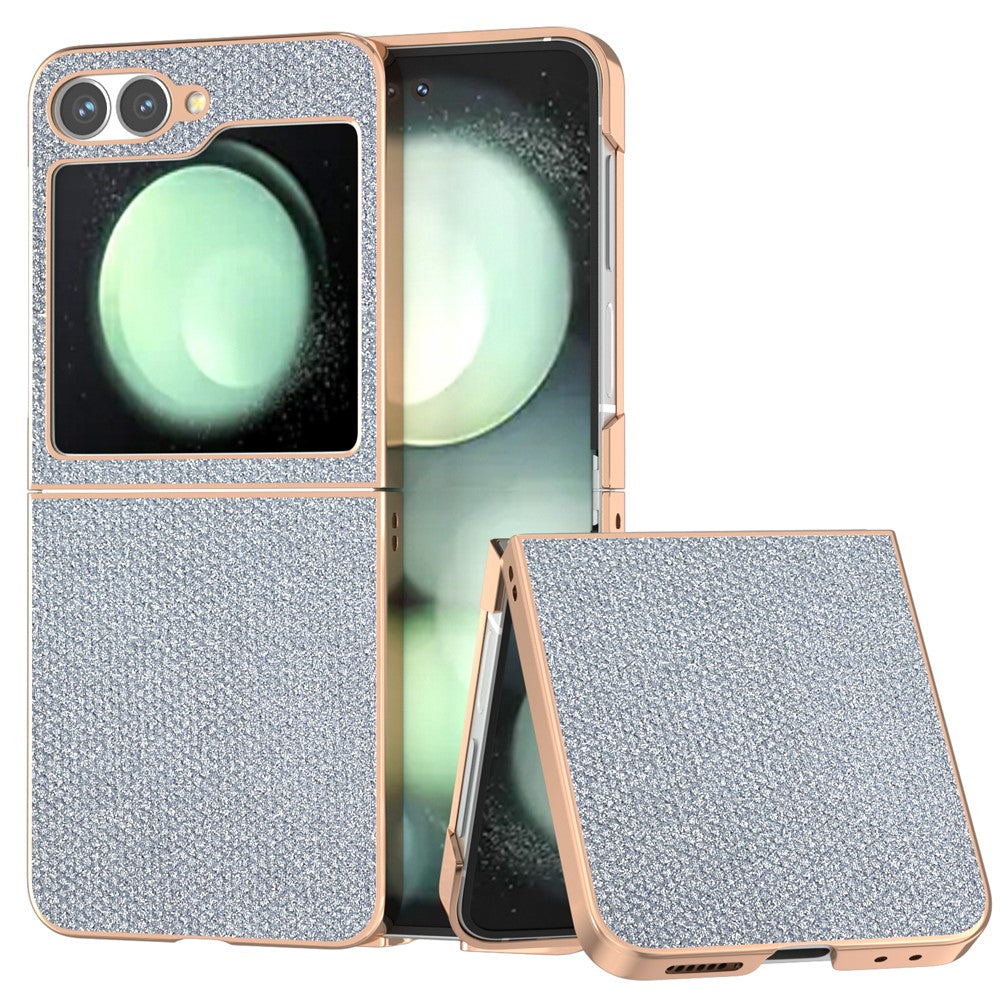 For Samsung Galaxy Z Flip7 FE 5G / Z Flip6 5G Case Rhinestone Texture PU+TPU Phone Cover Electroplating Edge - Grey