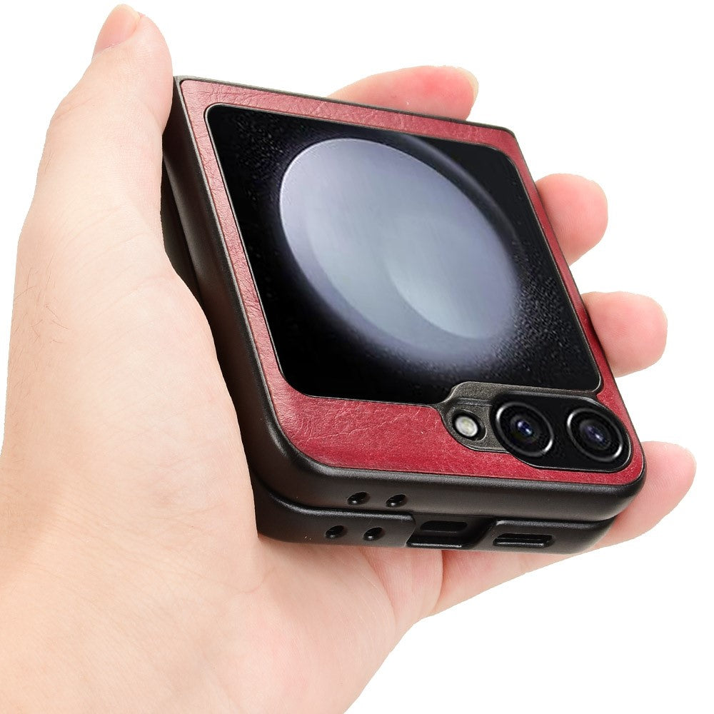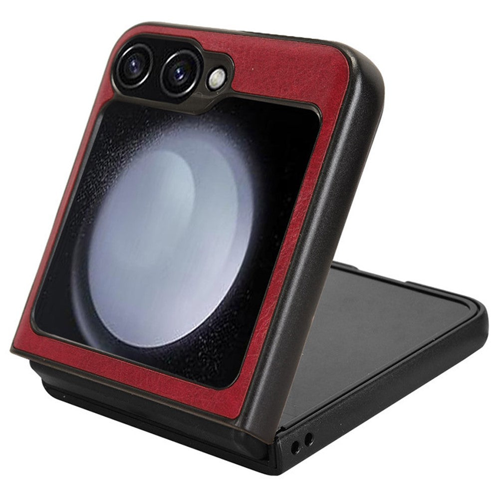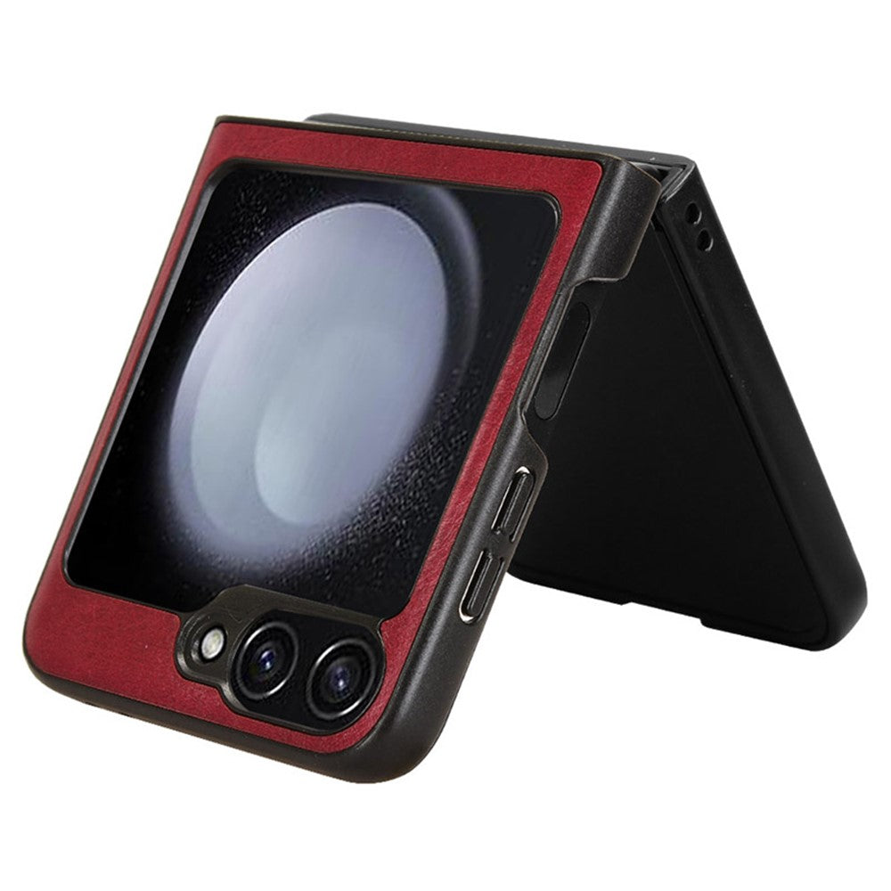 For Samsung Galaxy Z Flip7 FE 5G / Z Flip6 5G Case Stitching Lines Cowhide Texture Leather Back Phone Cover - Red