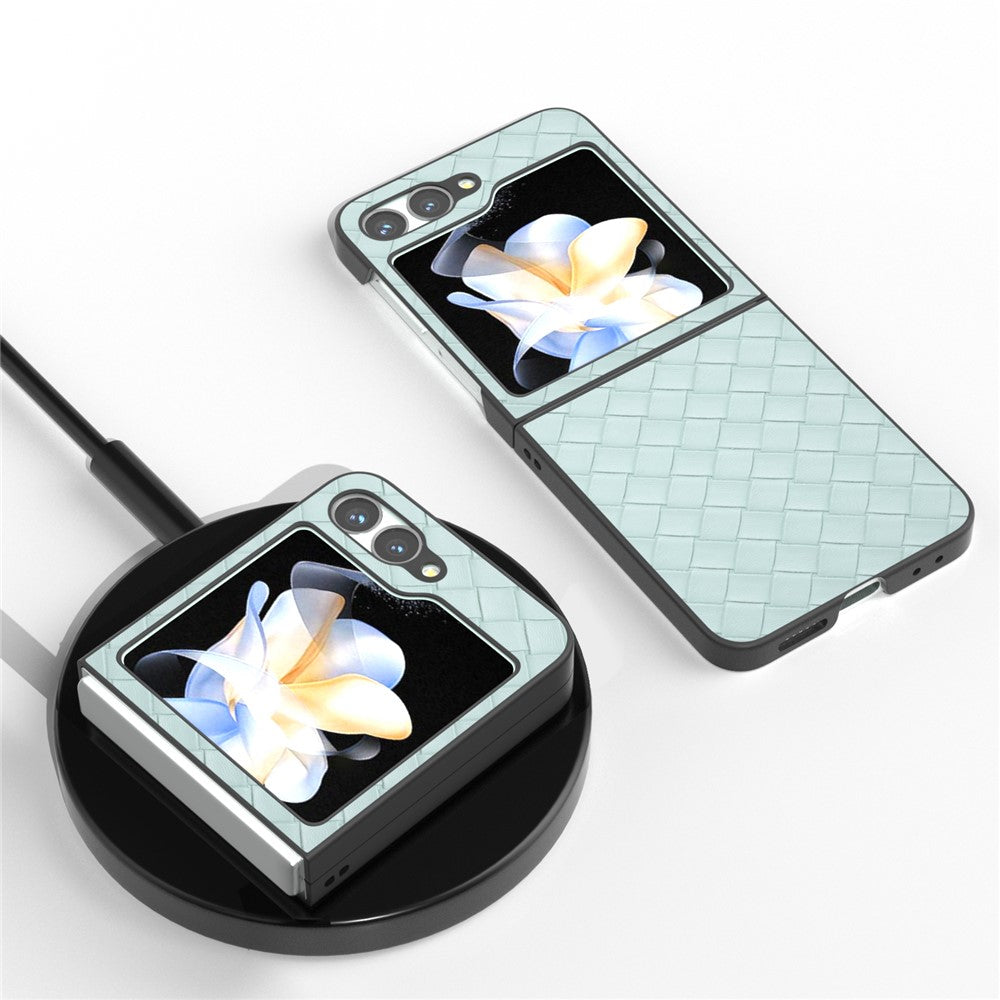 For Samsung Galaxy Z Flip7 FE 5G / Z Flip6 5G Case Woven Texture Leather+PC Protective Phone Cover - Light Green