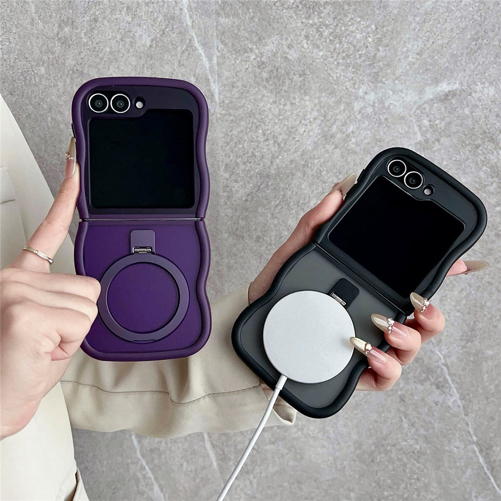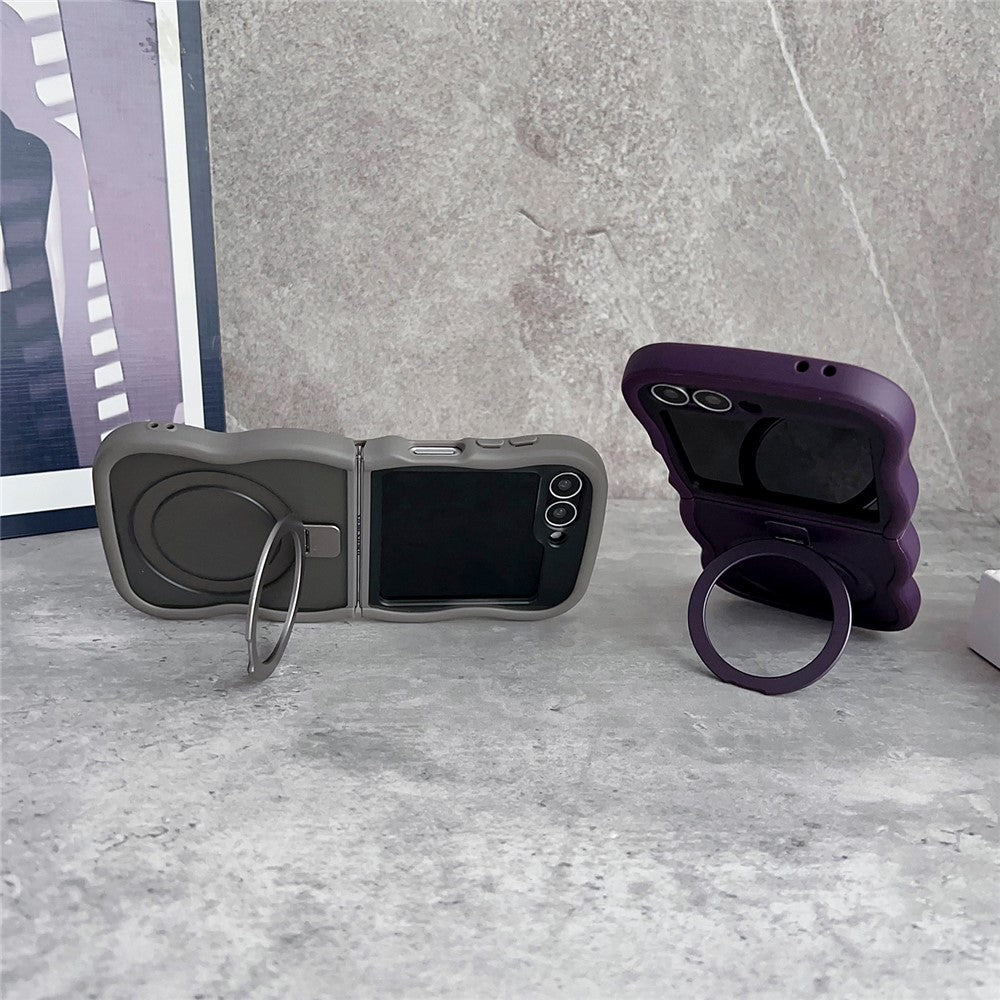 For Samsung Galaxy Z Flip7 FE 5G / Z Flip6 5G / Flip5 5G Magnetic Case Kickstand Skin-Touch Wave Edge TPU + PC Phone Cover - Grey