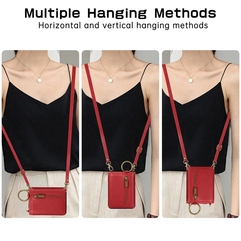 For Samsung Galaxy Z Flip7 FE 5G / Z Flip6 5G Leather Back Cover Zipper Wallet Kickstand Phone Case with Shoulder Strap - Red