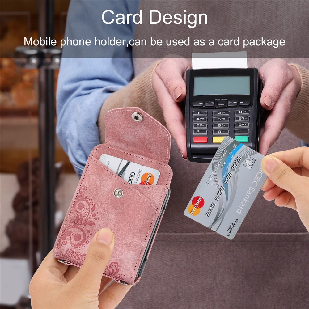 For Samsung Galaxy Z Flip7 FE 5G / Z Flip6 5G Leather Case Multiple Card Slots Phone Cover with Shoulder Strap - Pink