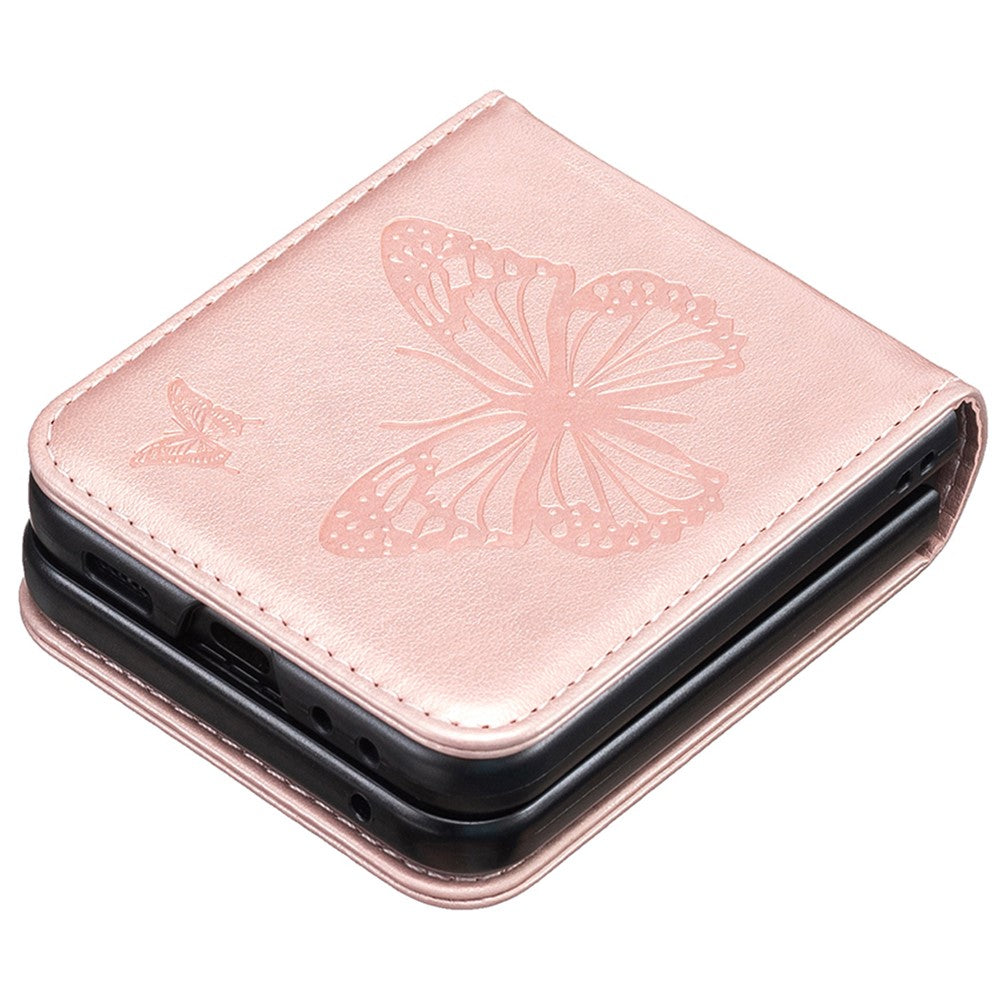 For Samsung Galaxy Z Flip7 FE 5G / Z Flip6 5G / Z Flip5 5G Case Butterfly Pattern PU Leather + PC Anti-Scratch Phone Cover - Rose Gold