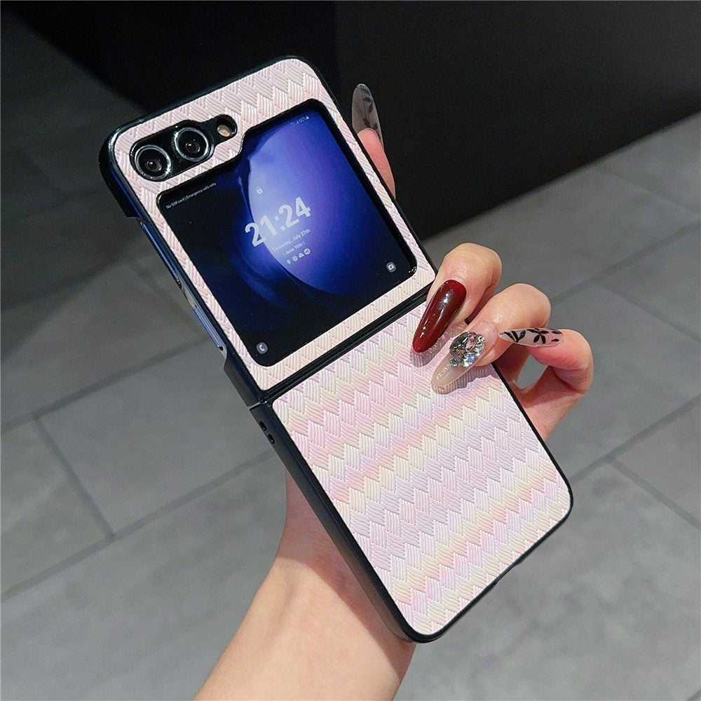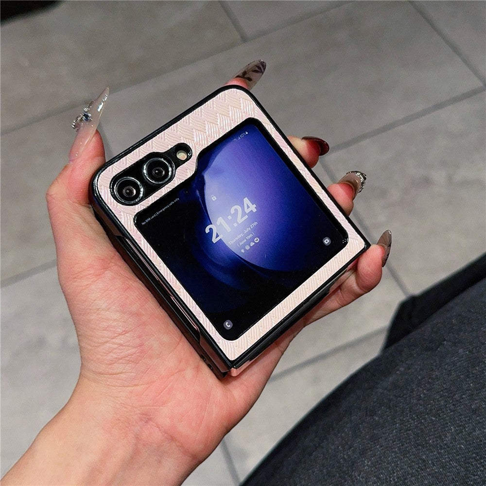 For Samsung Galaxy Z Flip7 FE 5G / Z Flip6 5G / Z Flip5 5G Case Two-Piece Design Leather + PC Laser Grid Phone Cover - Pink