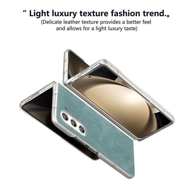 For Samsung Galaxy Z Fold 5G Case PU Leather+PC Matte Edge Anti-Fingerprint Back Phone Cover - Baby Blue
