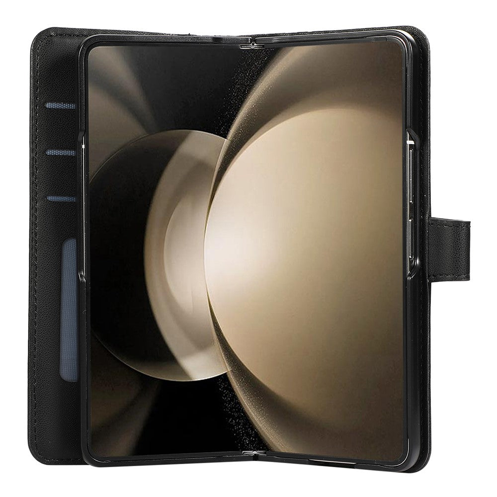 For Samsung Galaxy Z Fold7 5G Case 3D Rhombus Grid Imprinted Wallet Leather Phone Cover with Lanyard - Black
