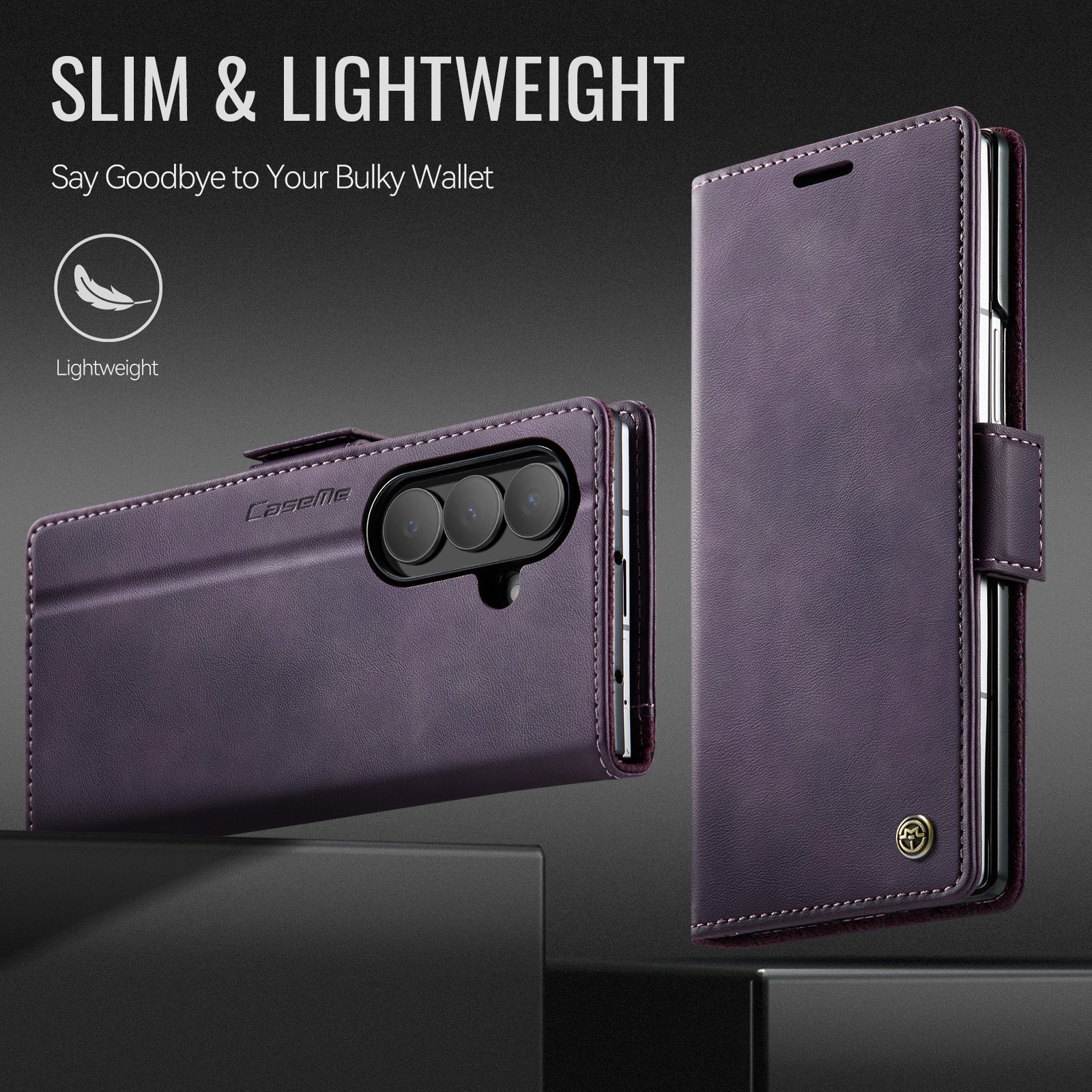 For Samsung Galaxy Z Fold7 5G Case CASEME 033 Series RFID Blocking Wallet Stand Calf Texture Leather Phone Cover - Purple