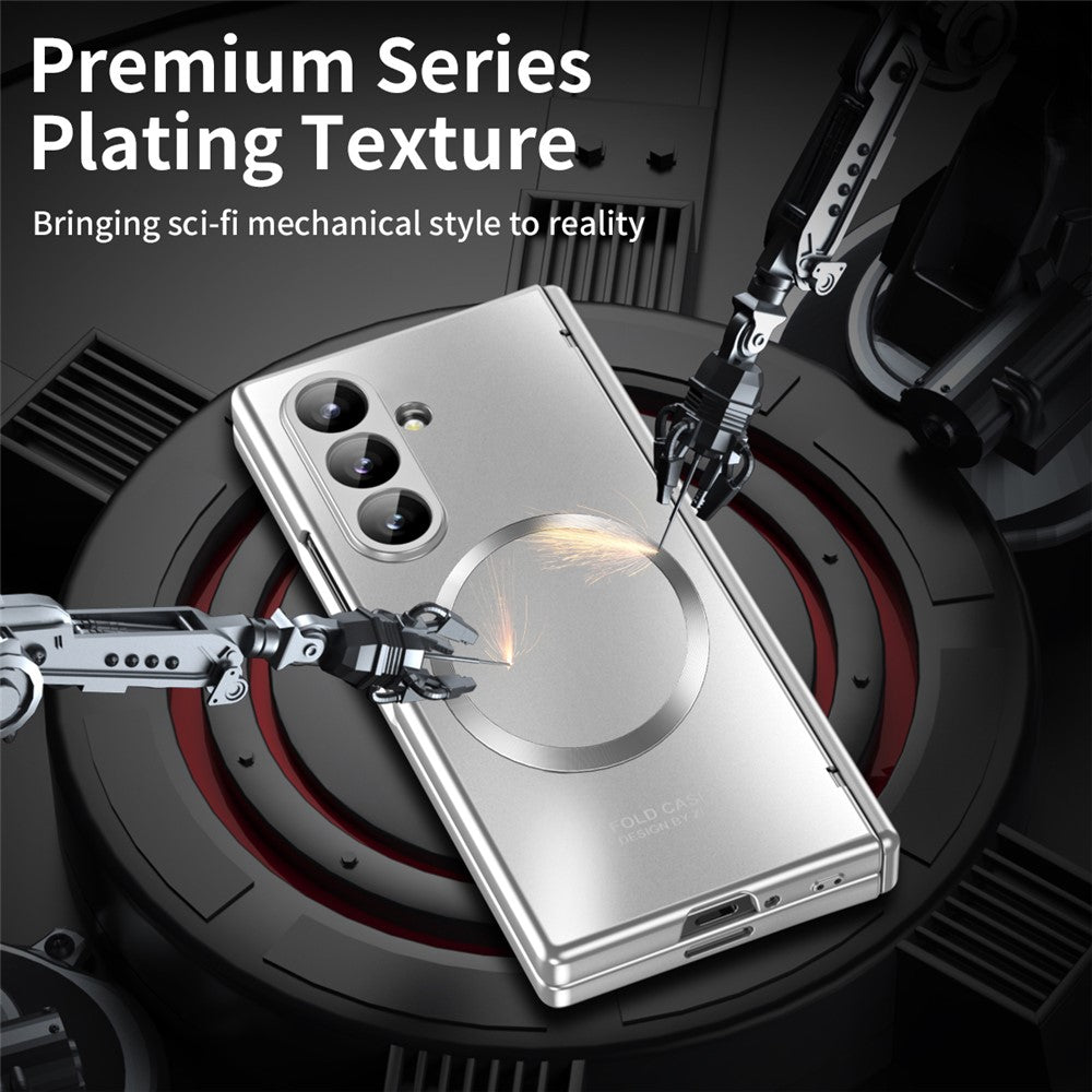 For Samsung Galaxy Z Fold7 5G Case Electroplated PC Magnetic Phone Cover with Tempered Glass Film - Silver