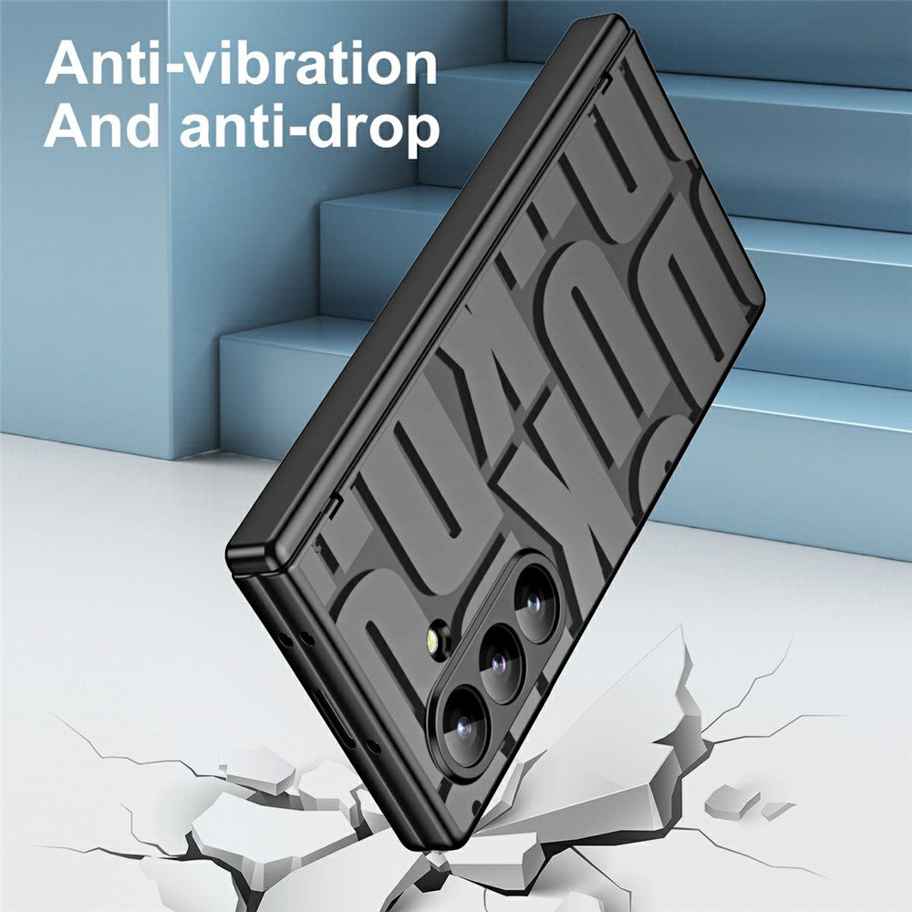 For Samsung Galaxy Z Fold7 5G Case Electroplating PC Phone Cover with Tempered Glass Film - Black