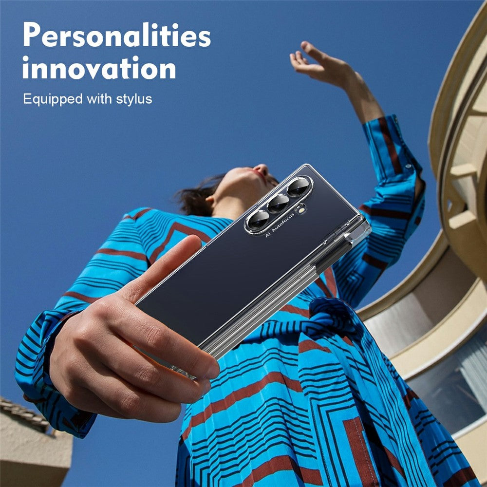 For Samsung Galaxy Z Fold7 5G Case Hinge Protection PC Phone Cover with Stylus / Stylus Slot - Transparent