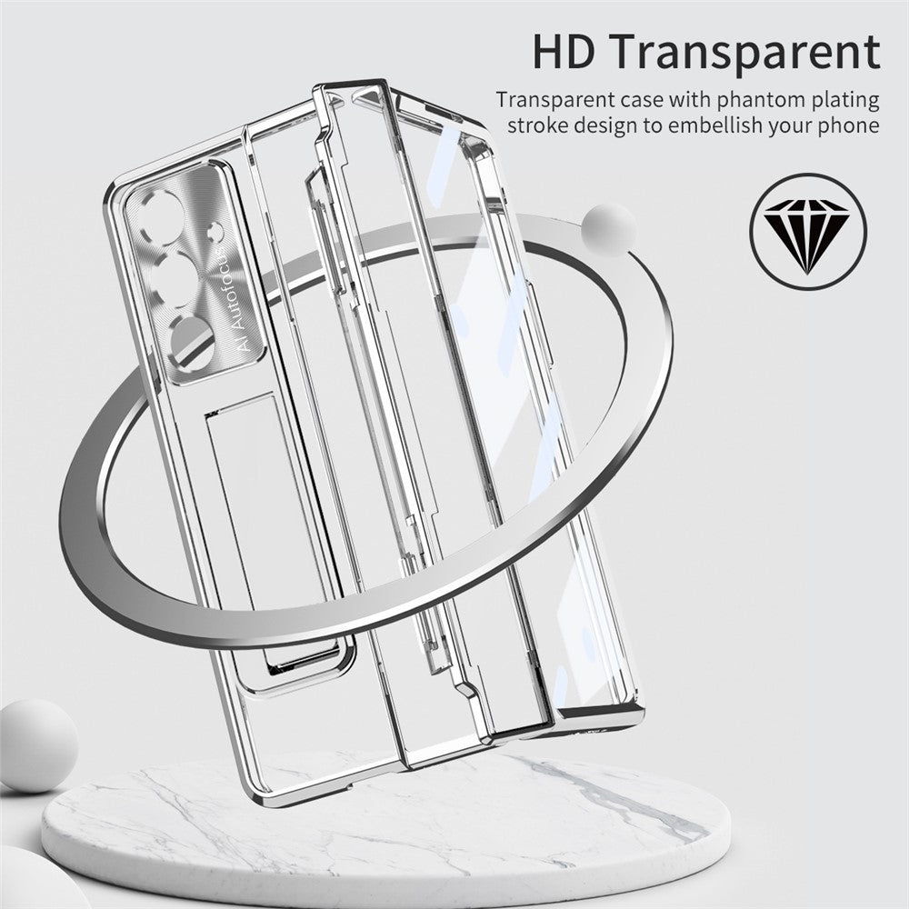 For Samsung Galaxy Z Fold7 5G Case Kickstand Hard PC Phone Cover with Screen Film - Silver