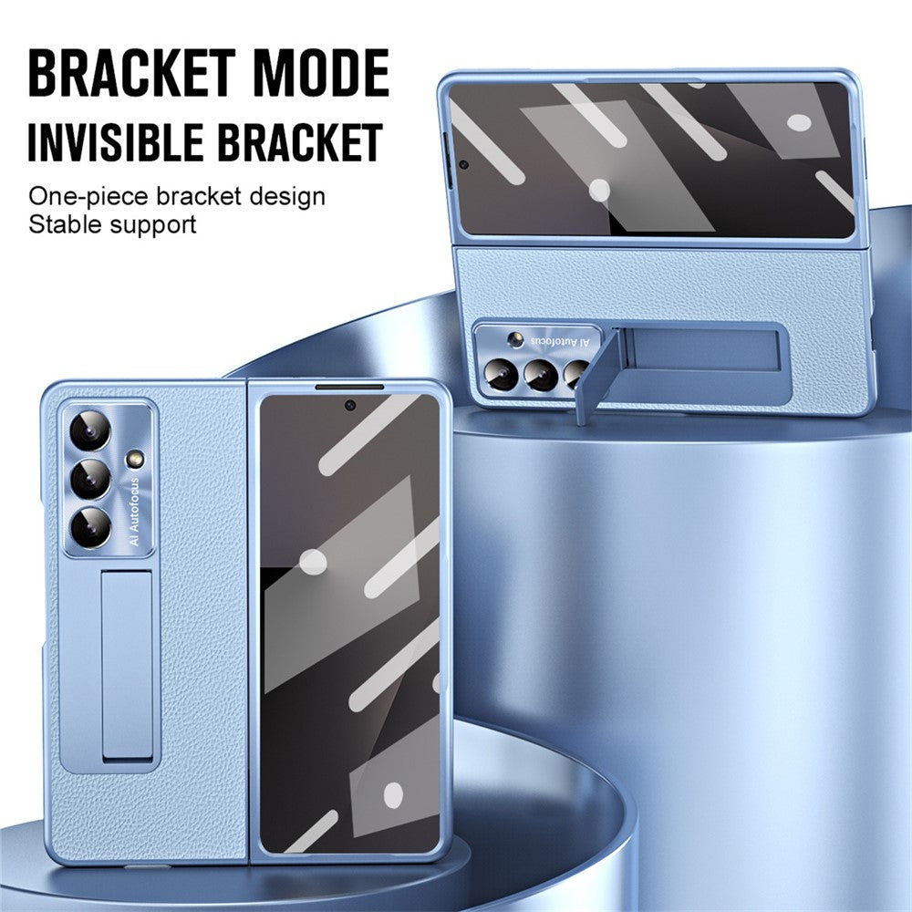 For Samsung Galaxy Z Fold7 5G Case Kickstand Leather + PC Phone Cover with Tempered Glass Film - Blue