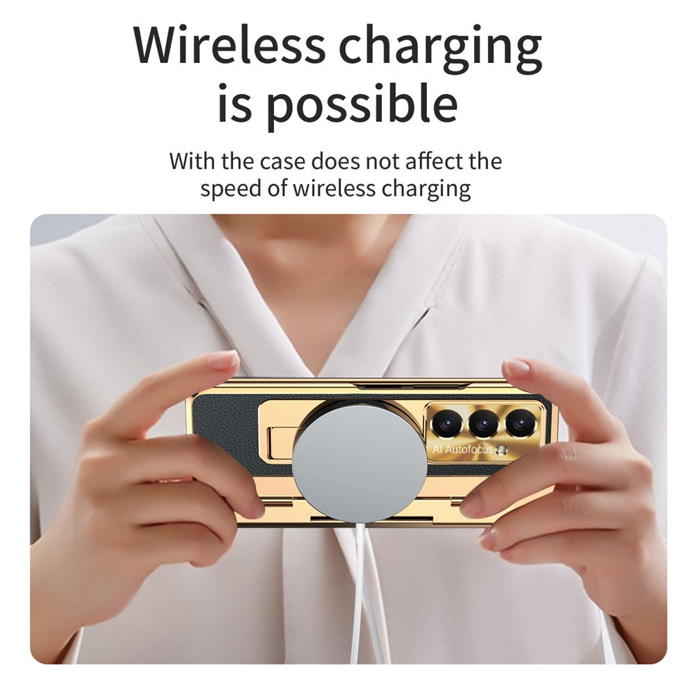 For Samsung Galaxy Z Fold7 5G Case Leather + PC Kickstand Phone Cover with Tempered Glass Film - Gold + Black
