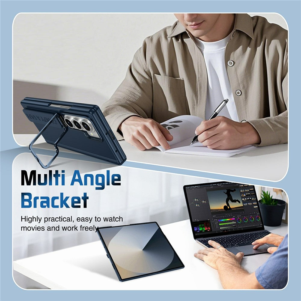 For Samsung Galaxy Z Fold7 5G Case Lens Kickstand Hinge Protection PC Phone Cover with Screen Film - Dark Blue
