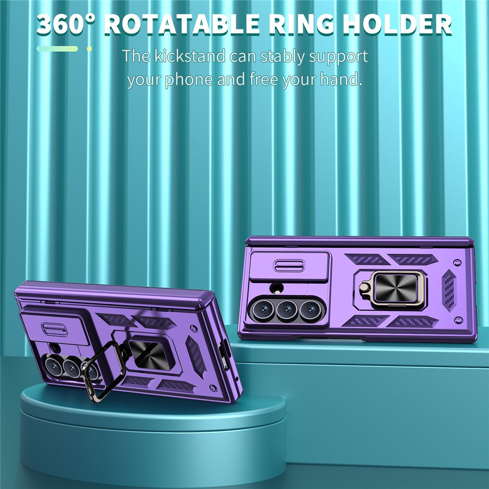 For Samsung Galaxy Z Fold7 5G Case PC + TPU Shockproof Phone Back Cover with Kickstand - Purple