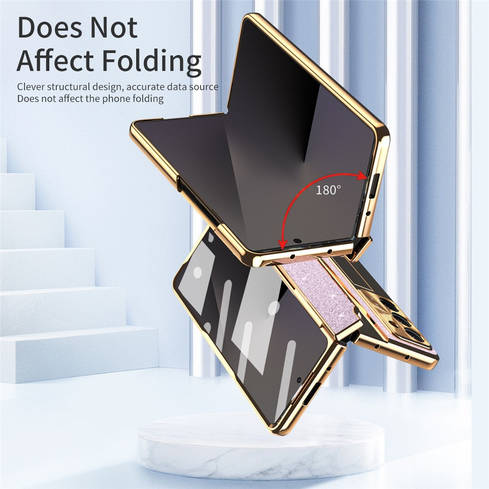 For Samsung Galaxy Z Fold7 5G Case with Kickstand Hinge Protection Rhinestone Glitter PC Phone Cover - Purple
