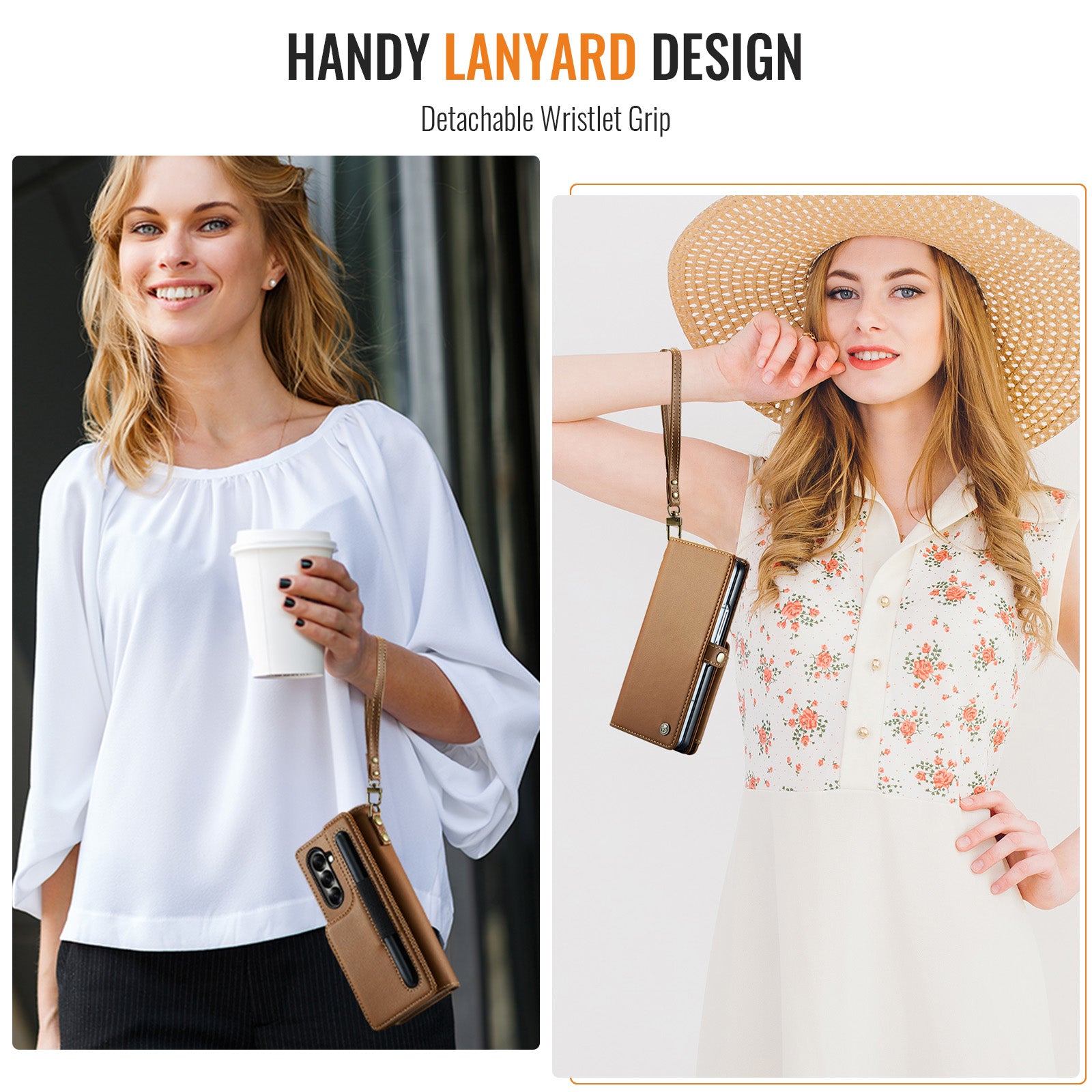 For Samsung Galaxy Z Fold7 5G Case with RFID Blocking 5 Card Slots CASEME C22 Leather Back Cover - Brown