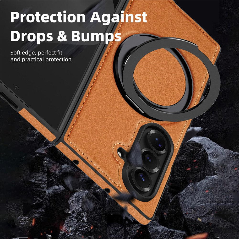 For Samsung Galaxy Z Fold7 5G Case with Ring Kickstand Compatible with MagSafe PU Leather Back Cover - Brown
