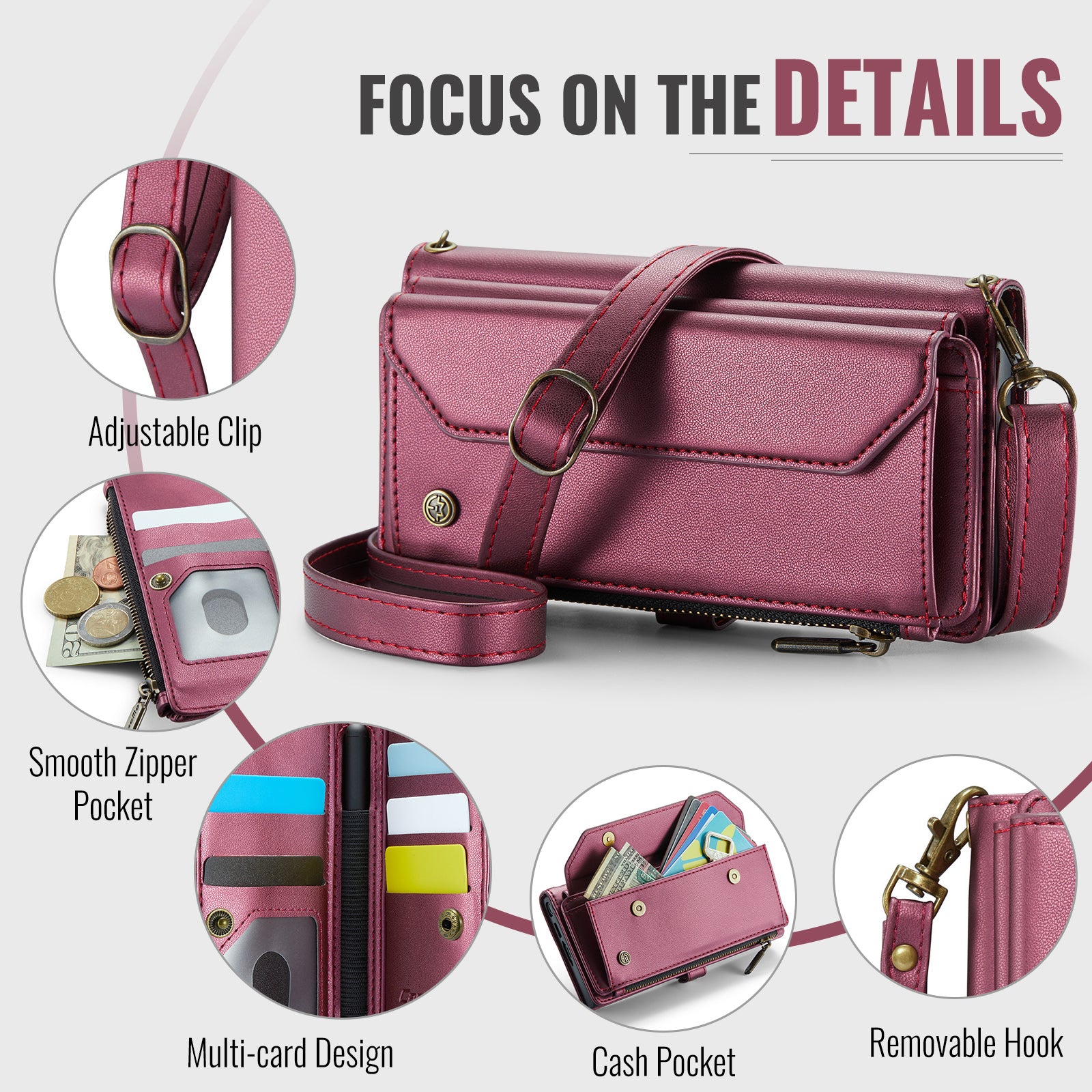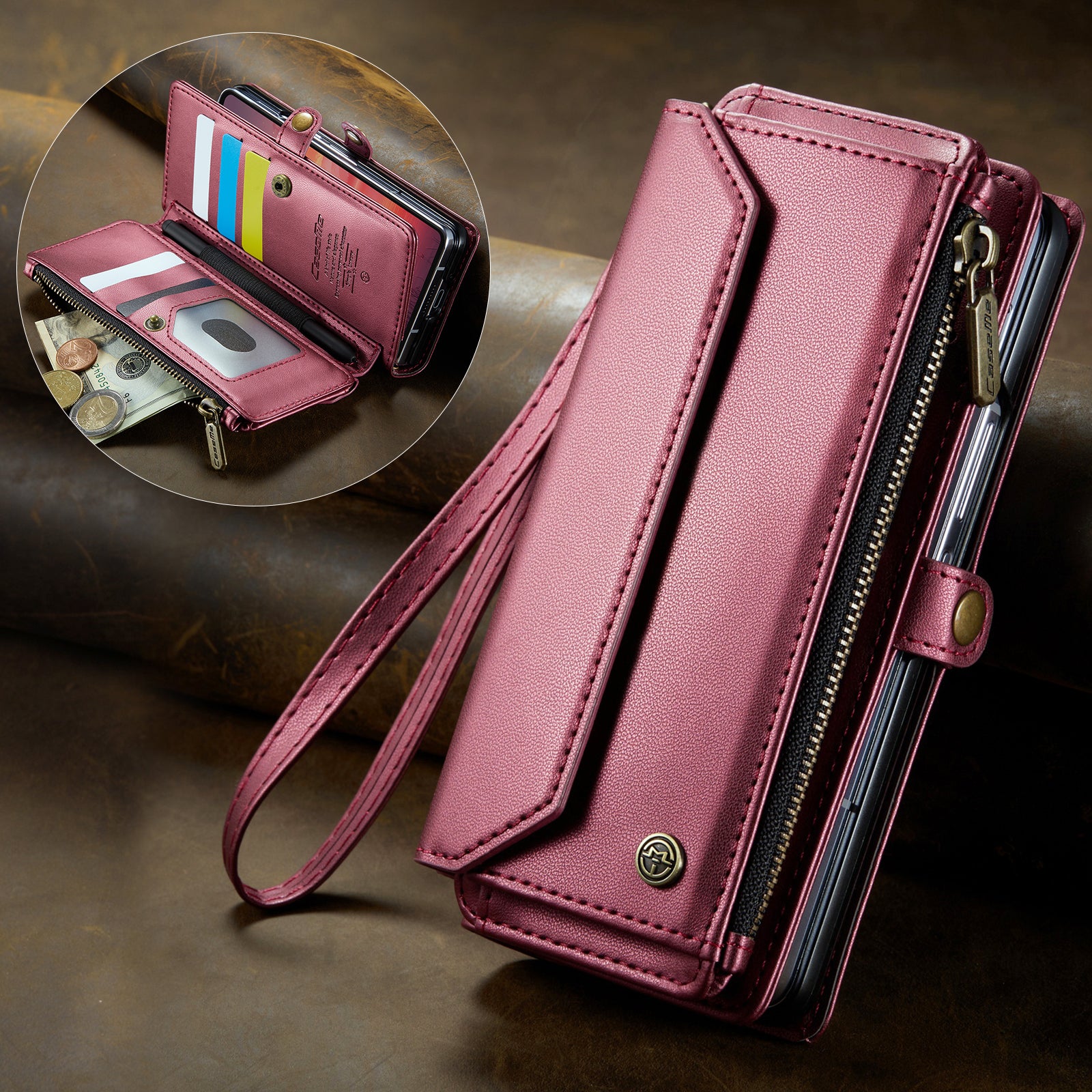 For Samsung Galaxy Z Fold7 5G Leather Case CASEME C36 Zipper 10 Card Slots Phone Cover with Straps - Red