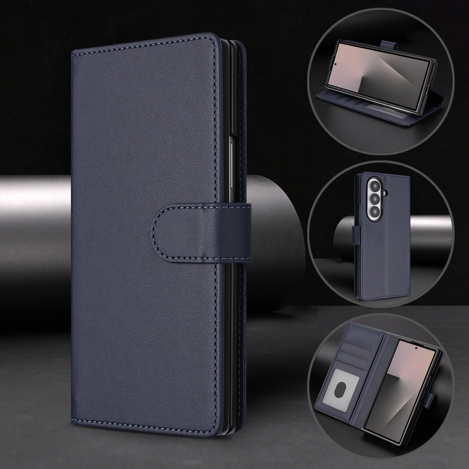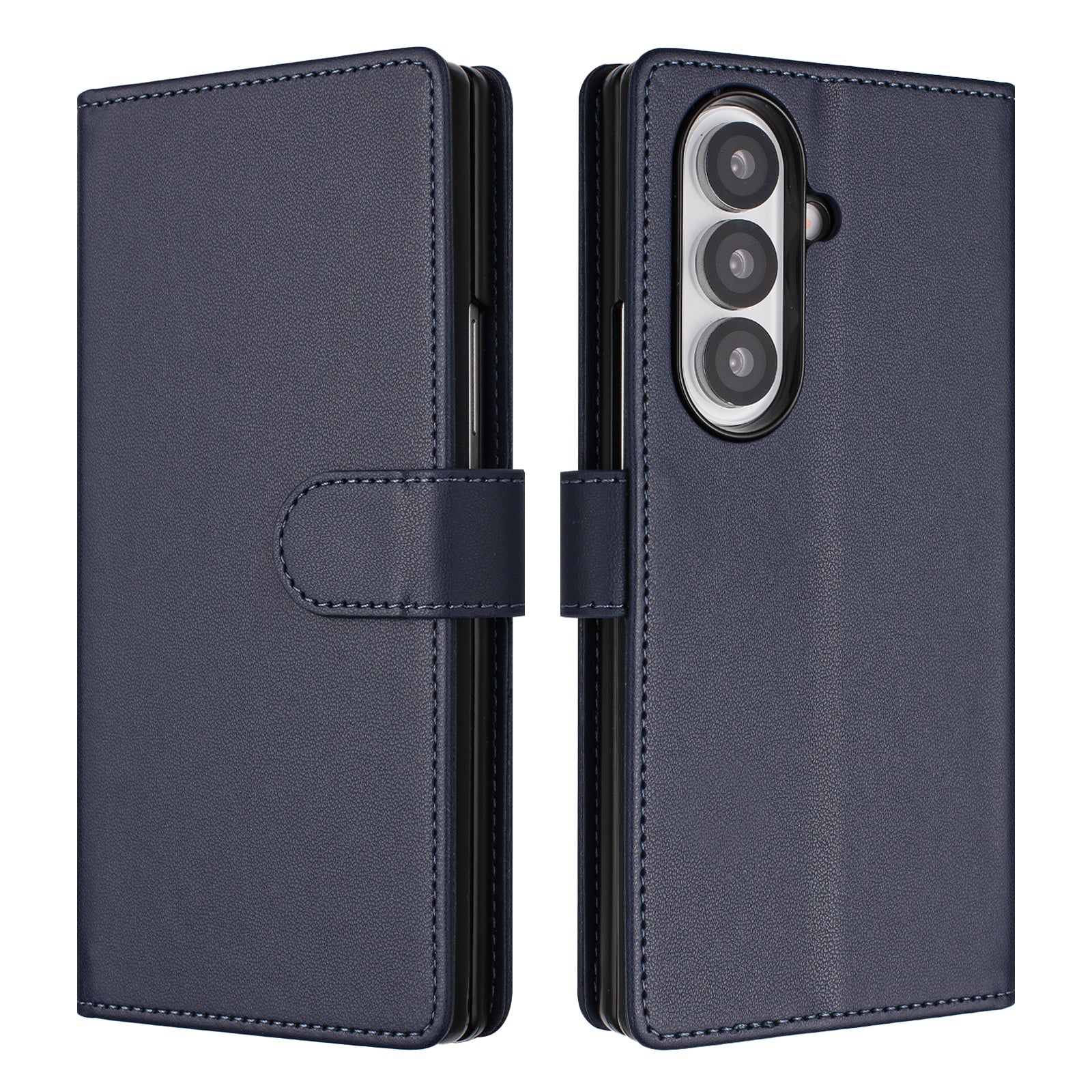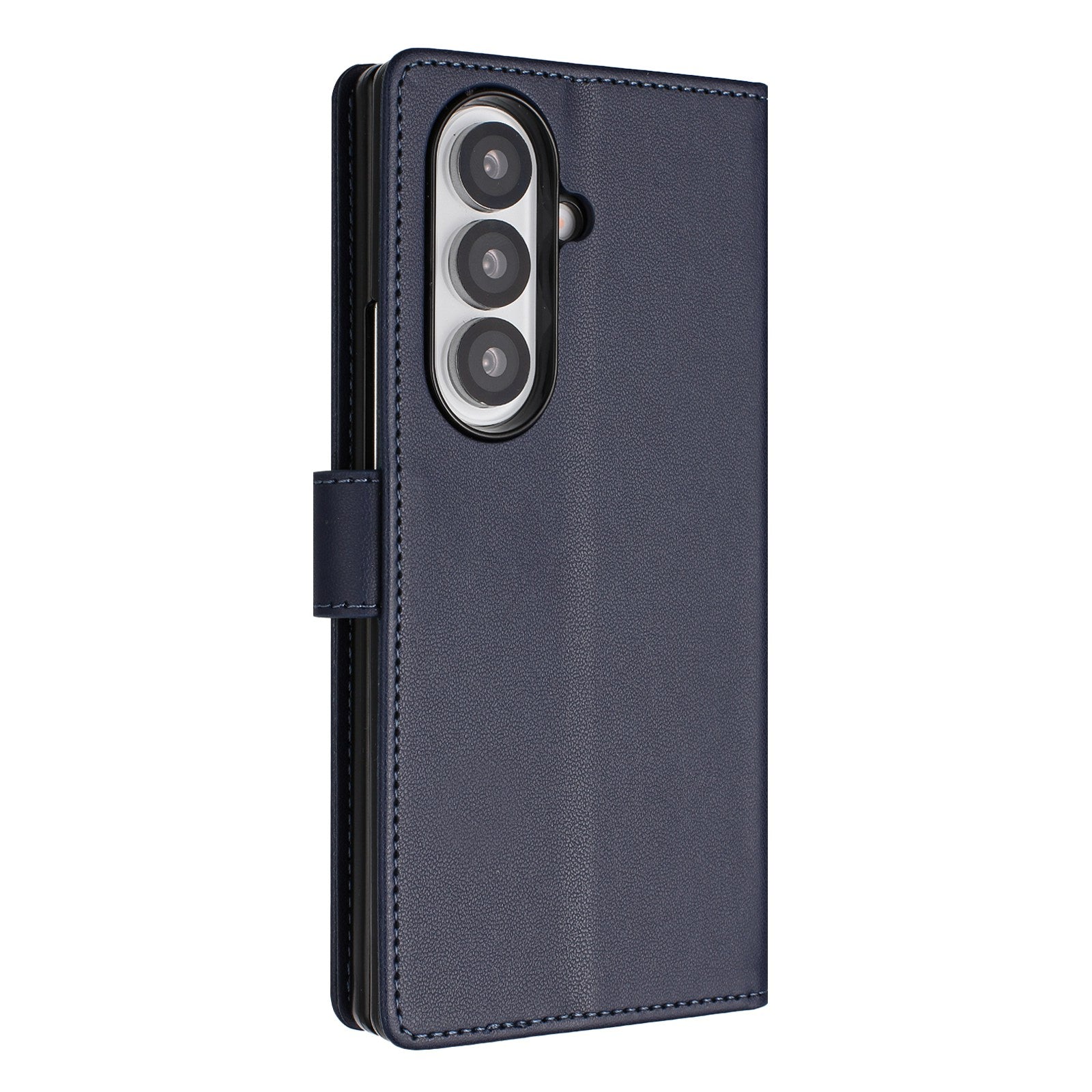 For Samsung Galaxy Z Fold7 5G Leather Case Wallet Stand Phone Cover with Wrist Strap - Blue