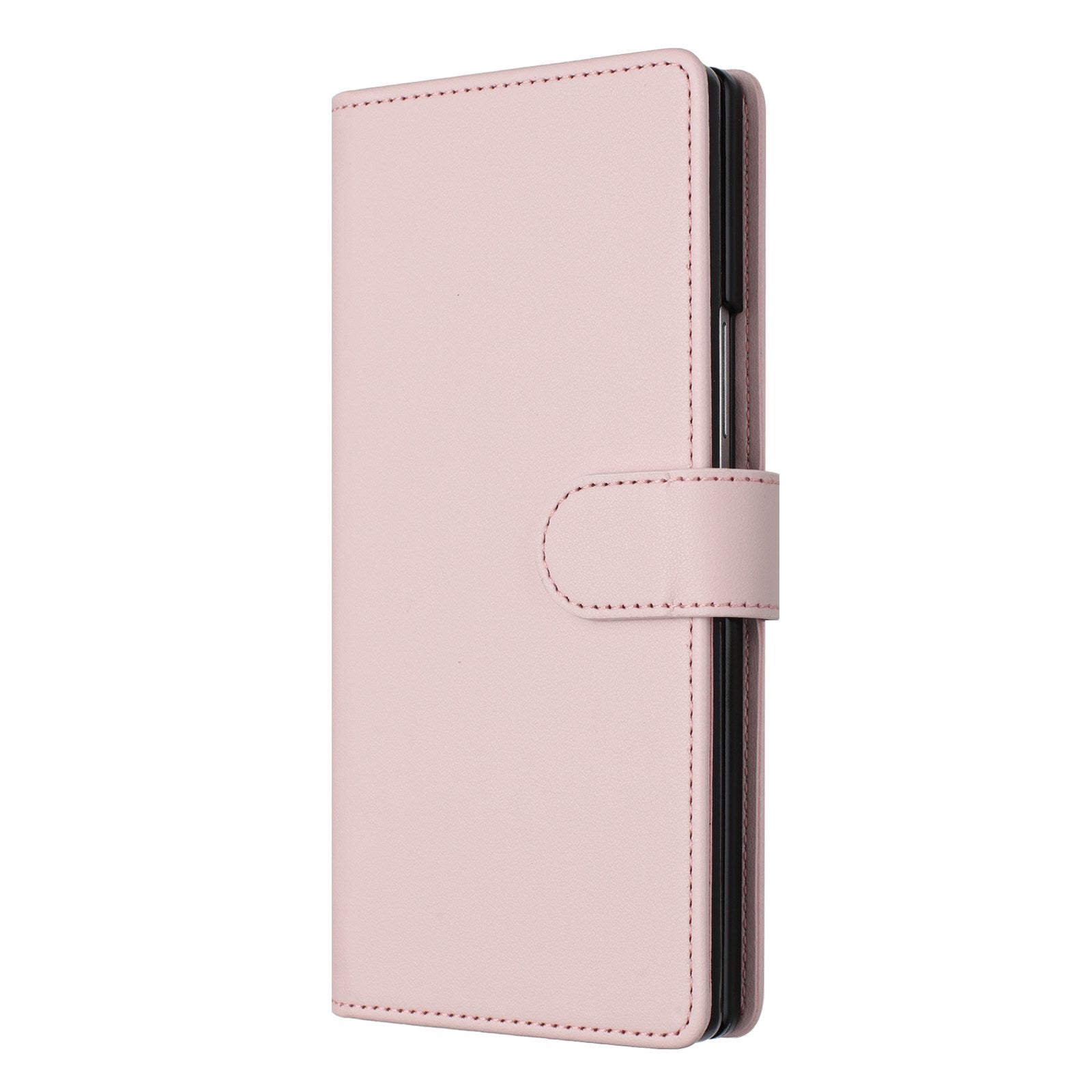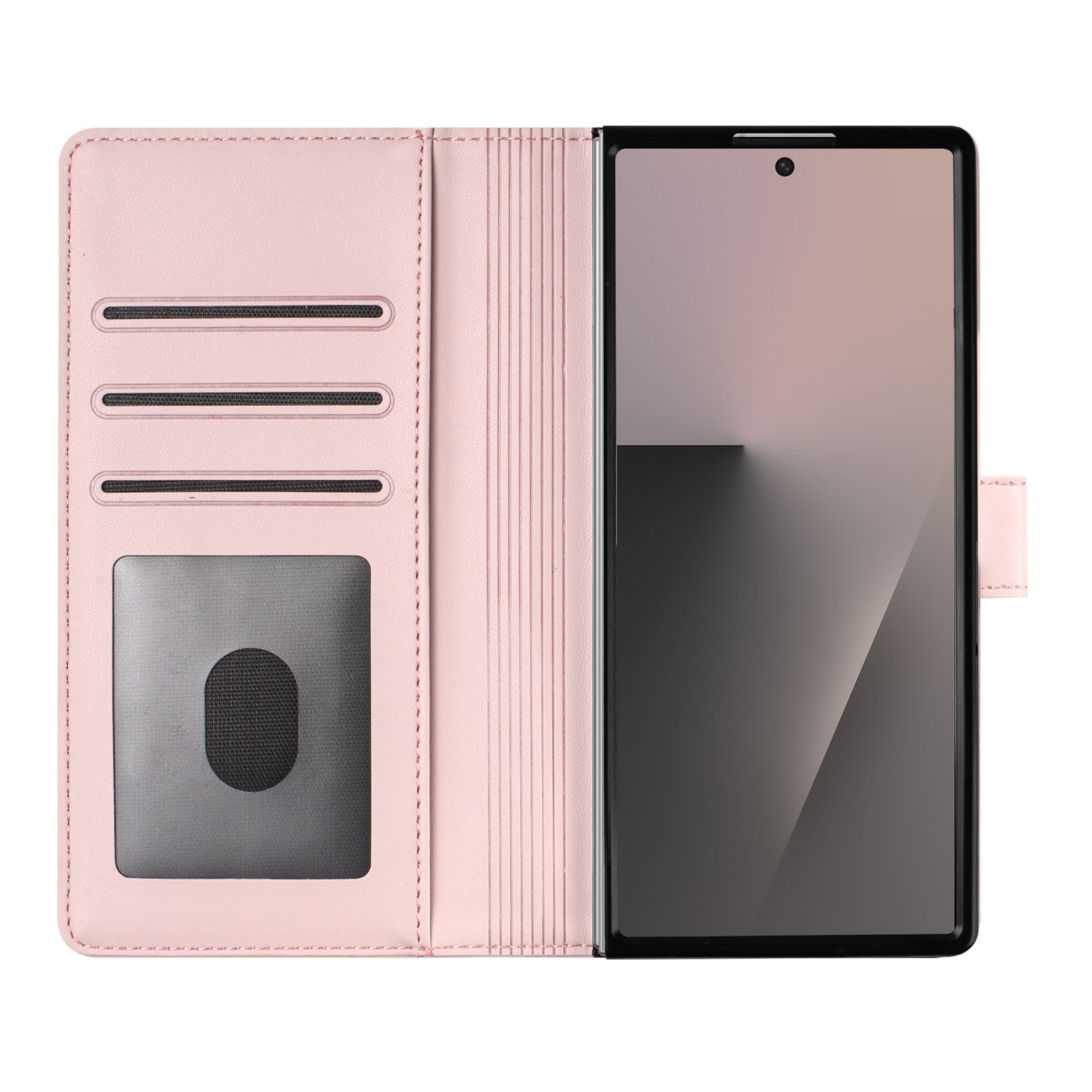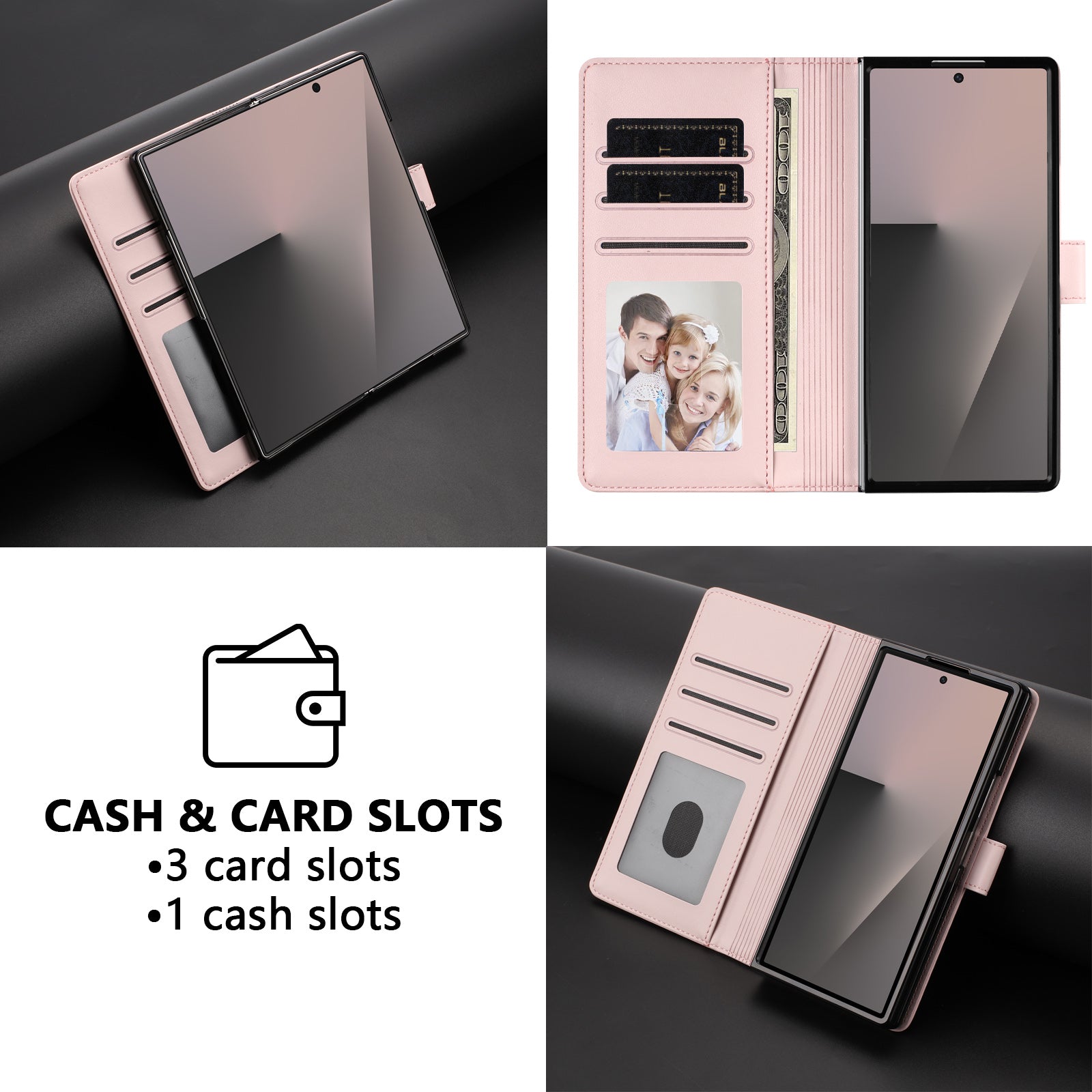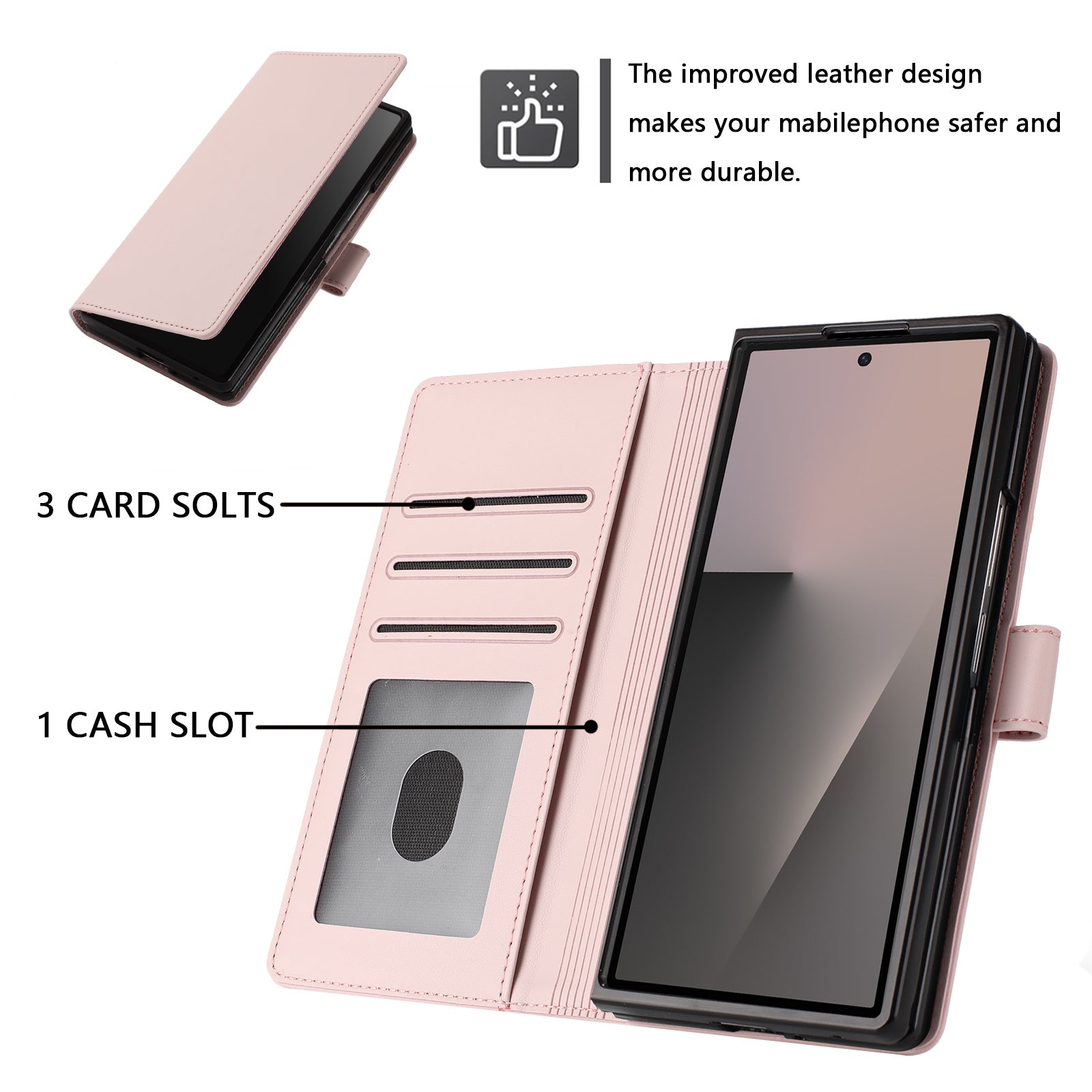 For Samsung Galaxy Z Fold7 5G Leather Case Wallet Stand Phone Cover with Wrist Strap - Pink