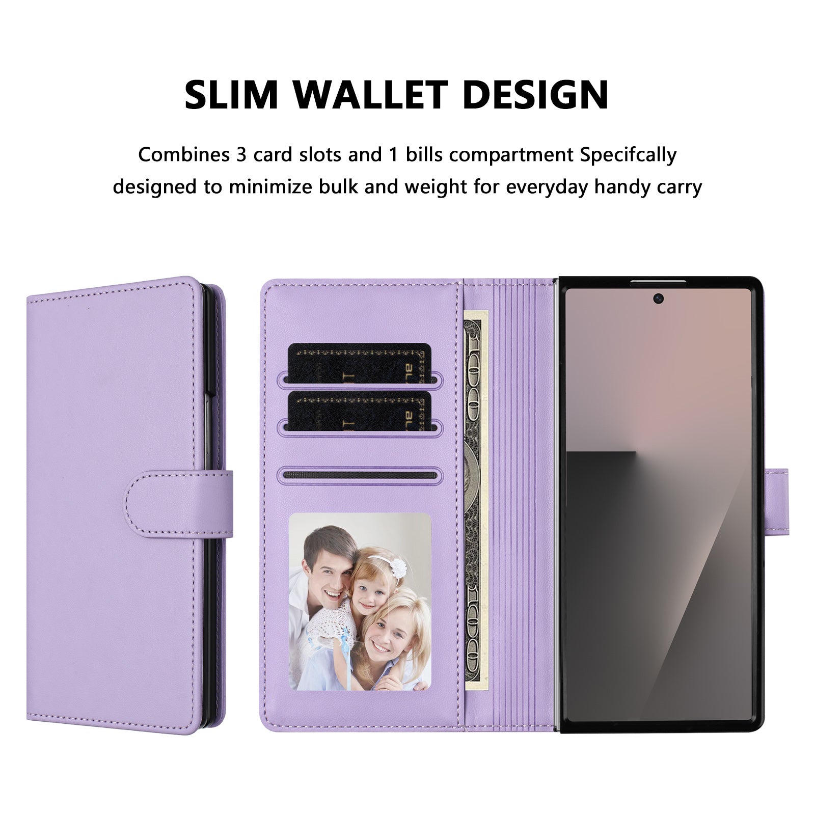 For Samsung Galaxy Z Fold7 5G Leather Case Wallet Stand Phone Cover with Wrist Strap - Purple