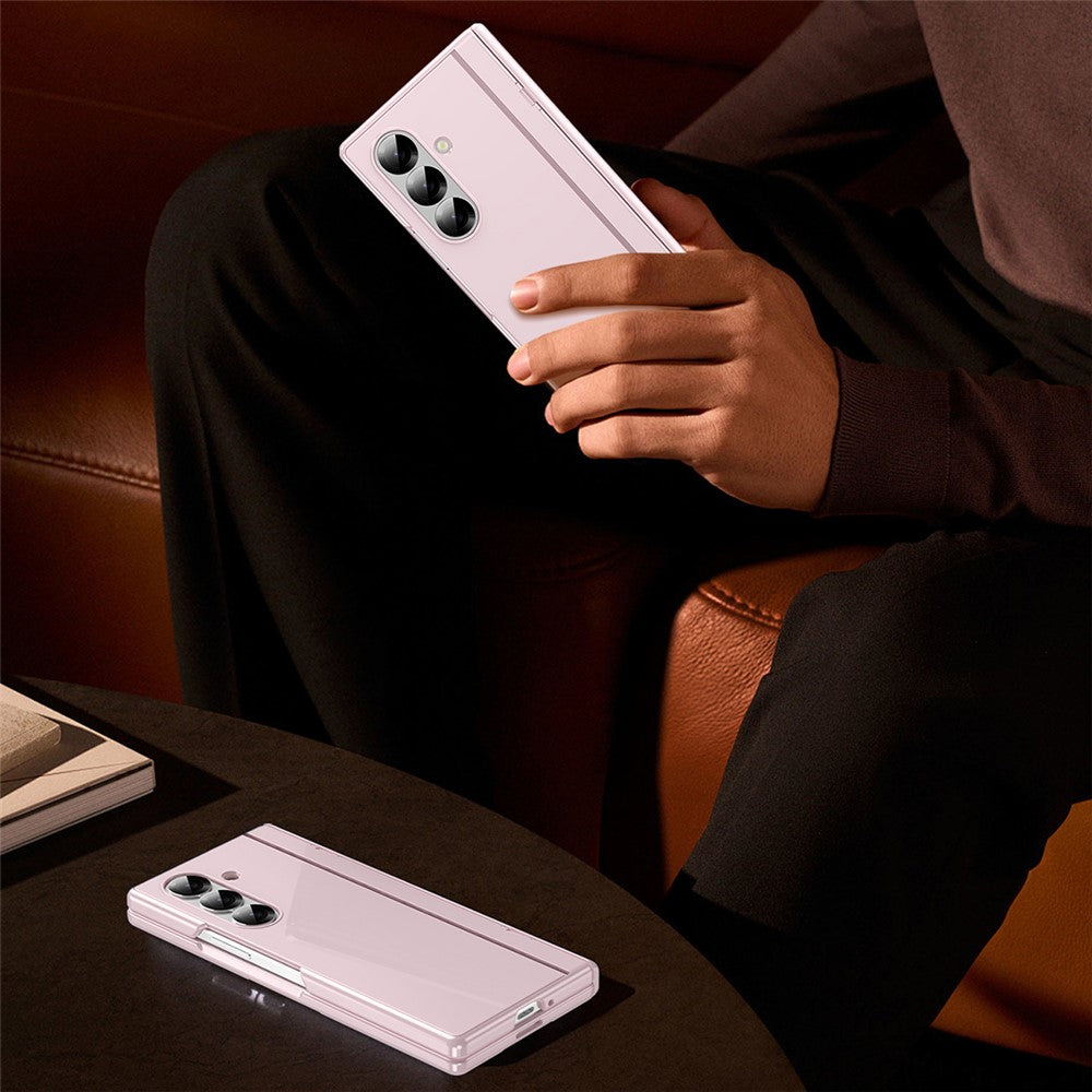 For Samsung Galaxy Z Fold7 5G PC Phone Case with Back Cover Kickstand and Tempered Glass Film - Pink