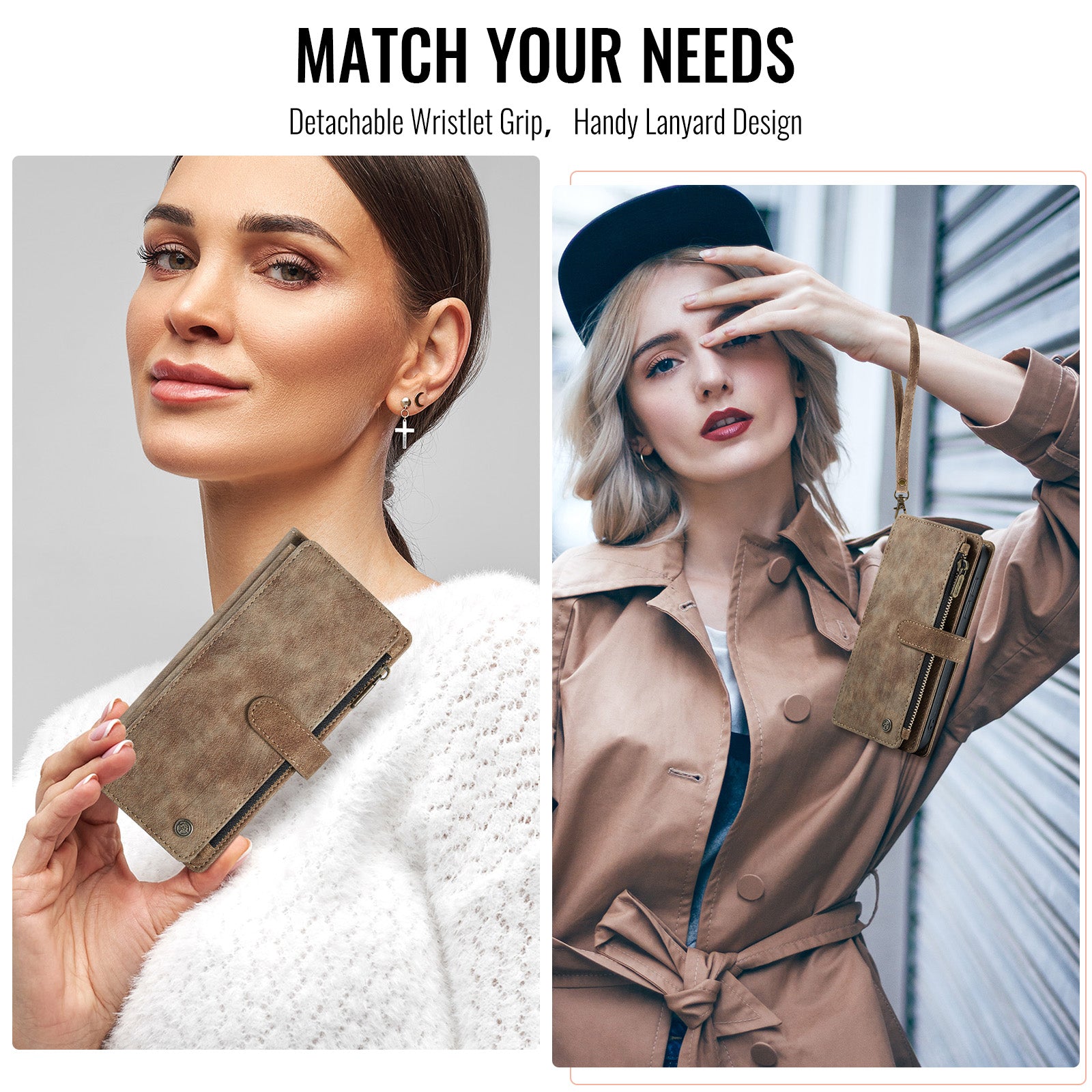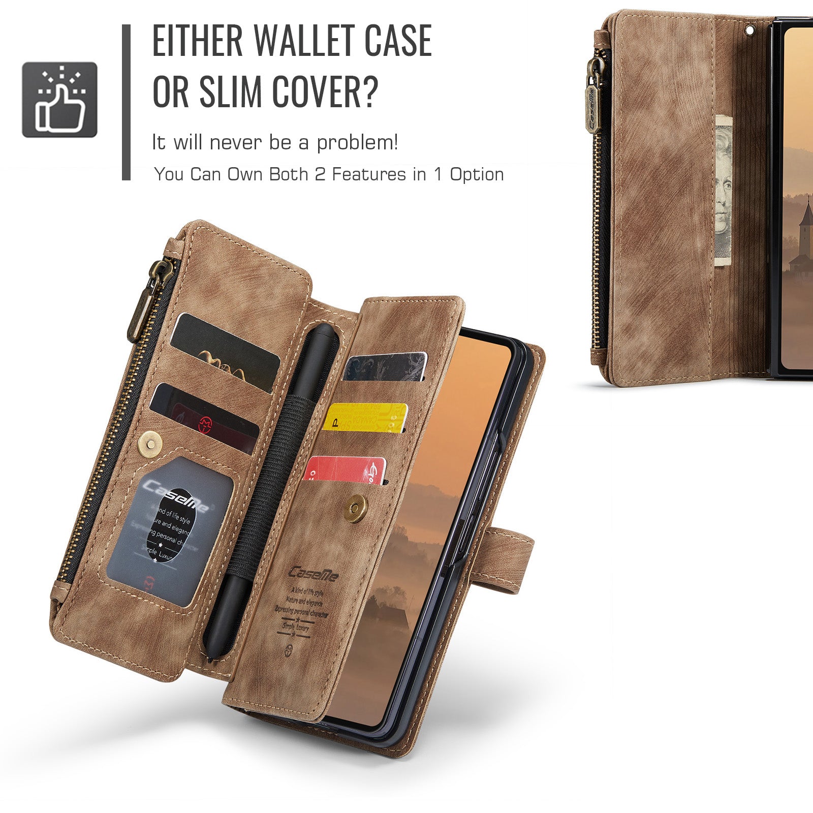For Samsung Galaxy Z Fold7 5G Phone Cases with Strap CASEME C30 Zipper Multiple Card Holder PU Leather Cover - Brown