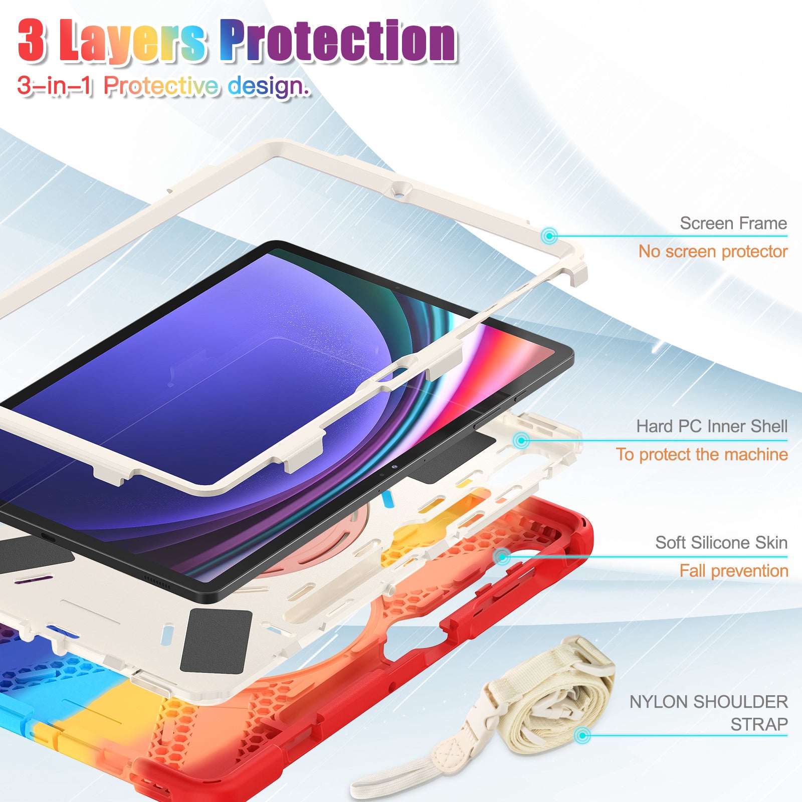 For Samsung Samsung Galaxy Tab S10+ X826 / S9 FE+ / S9+ / S8+ / S7+ Kickstand Tablet Case Shockproof PC+Silicone Cover, Shoulder Strap - Colorful Red