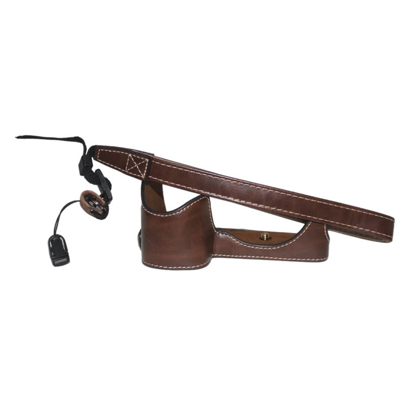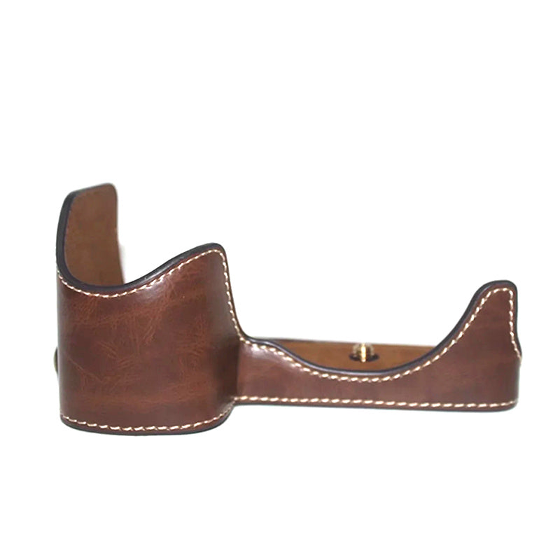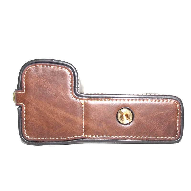 Uniqkart for Sony A6600 Anti-scratch PU Leather Camera Bottom Cover Battery Opening Design Half Body Protective Case with Hand Strap - Coffee