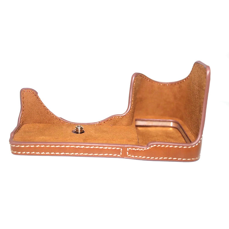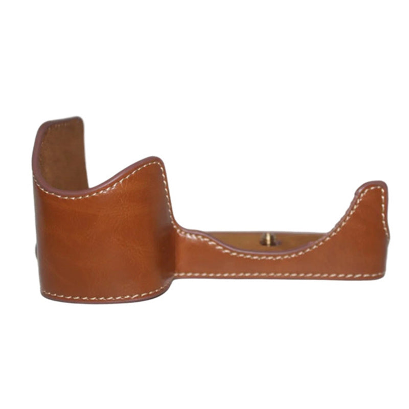 Uniqkart for Sony A6600 Camera Bottom Case Anti-scratch PU Leather Protective Half Body Cover with Battery Opening - Brown