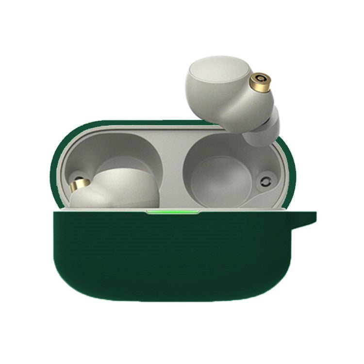 For Sony WF-1000XM4 Soft Silicone Cover Anti-shock Bluetooth Earphone Protective Sleeve Case with Anti-lost Buckle - Blackish Green