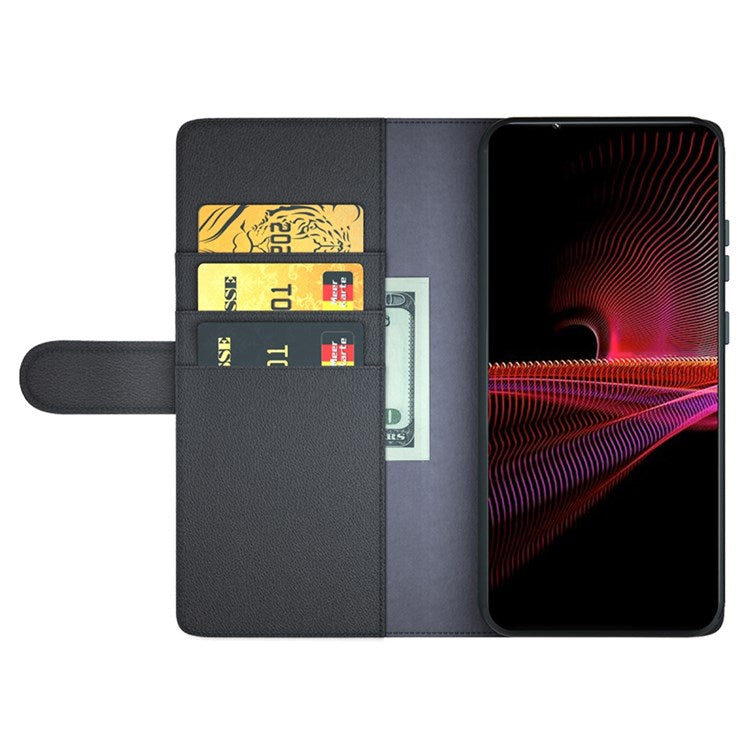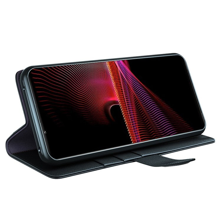 For Sony Xperia 1 III 5G Split Leather Genuine Leather Protective Cover Magnetic Clasp Wallet Stand Phone Case - Black