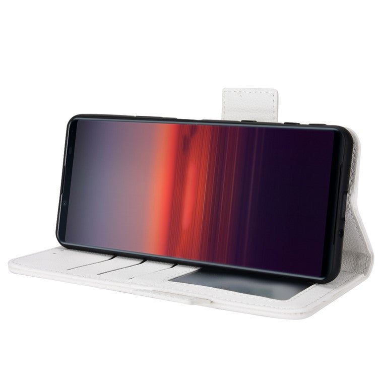 For Sony Xperia 5 II Dual Clasps PU Leather Phone Cover Litchi Texture Stand Wallet Protective Cover - White
