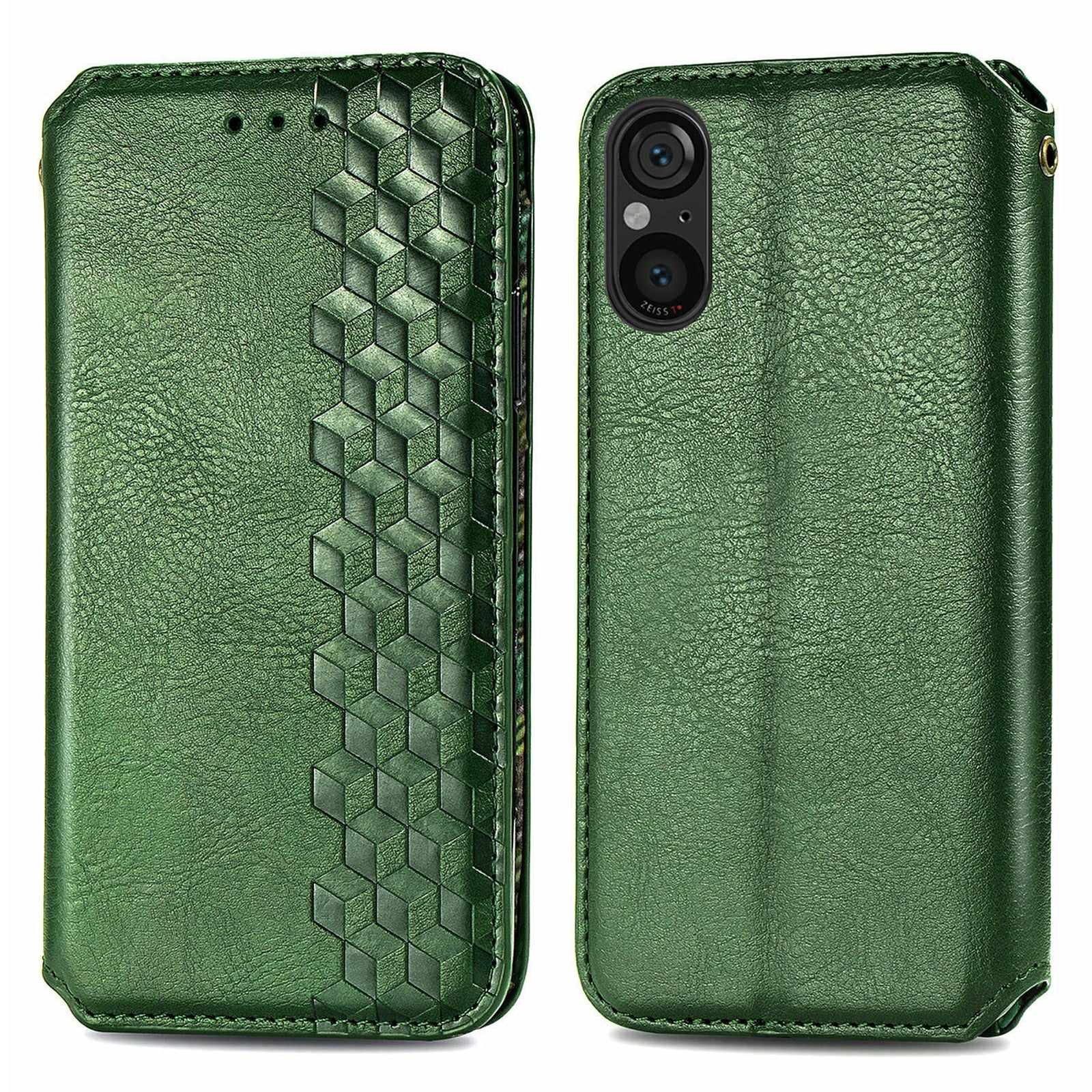 For Sony Xperia 5 V Case Wallet Card Slots Rhombus Leather Phone Cover - Green