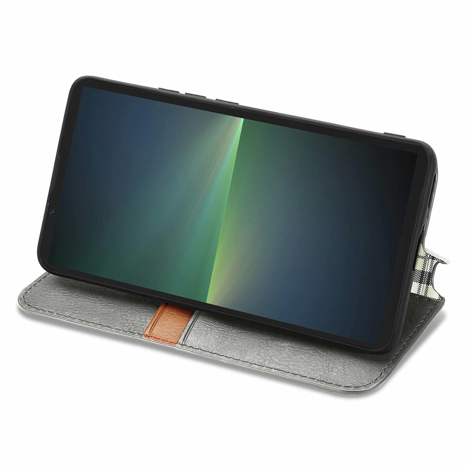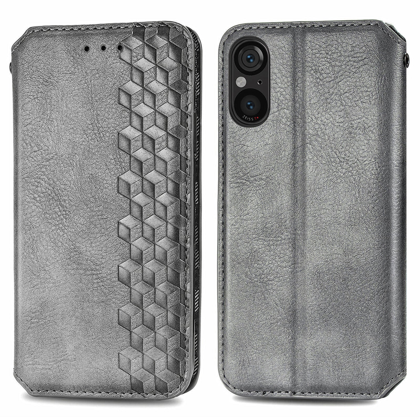 For Sony Xperia 5 V Case Wallet Card Slots Rhombus Leather Phone Cover - Grey