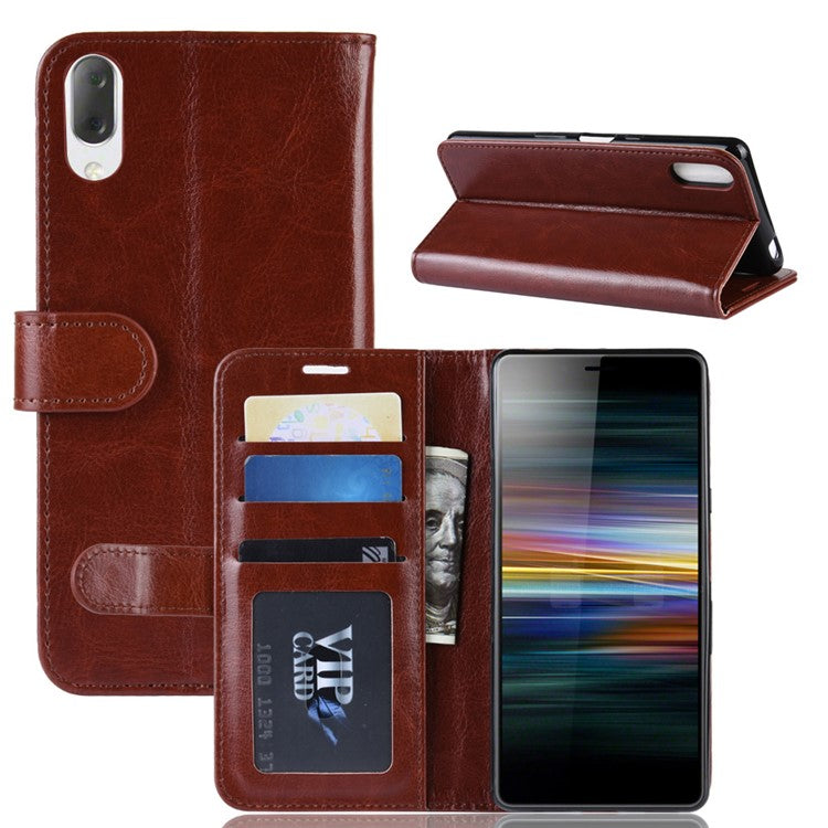 For Sony Xperia L3 Crazy Horse Leather Mobile Phone Case [Stand and Wallet] - Brown