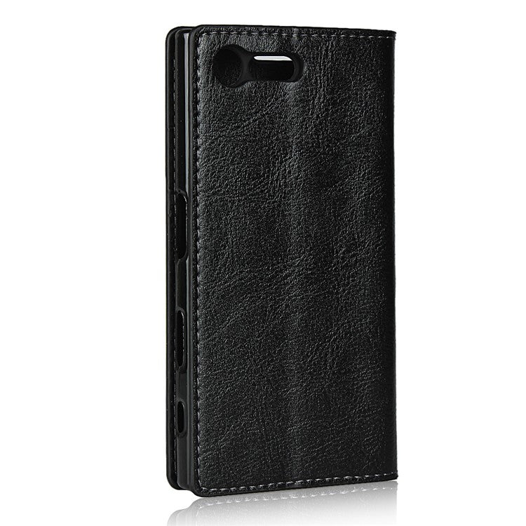 For Sony Xperia X Compact Crazy Horse Genuine Leather Wallet Case Shell - Black