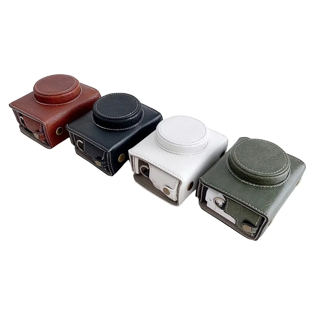 Uniqkart for Sony ZV-1F / ZV-1 Mark II Detachable PU Leather Camera Bag Battery Opening Design Drop-proof Cover with Shoulder Strap - Brown